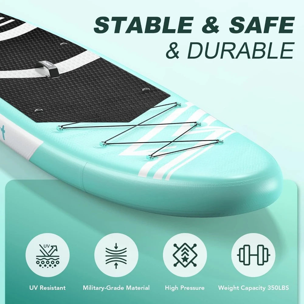 - PREEMINM MATERIAL - Paddle Boards is Made Of The Highest Quality Military Grade Material.Max load is up to 350 lbs Providing The Most Durable Lightweight Board On The Market. Brushed Thickening blow up paddle board with Non-slip soft deck,ideal for all skill levels for less accidents or injuries should you fall!