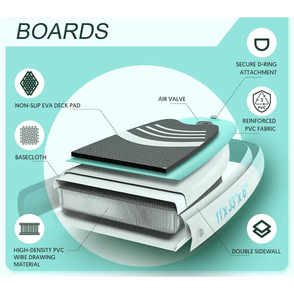 - WIDE AND LIGHTWEIGHT SUP DESIGN - Three sizes stand up paddling board, 11' long and 33''of deck width for improved stability and balance while standing.Paddle Boards Premium Paddle Board is Made Of The Highest Quality Military Grade Material. Providing The Most Durable Lightweight Board On The Market.