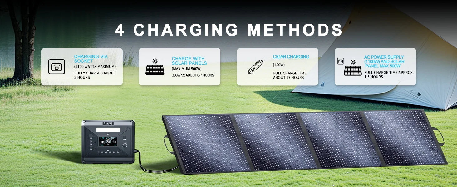 ✅AC power supply(1100w) and solar panel max 500w