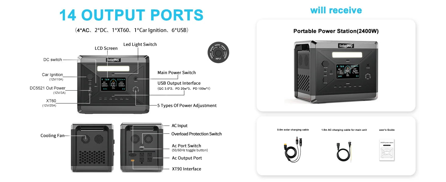 ✅SolarPlay Q2501 Portable Powerstation 2400W/2160Wh