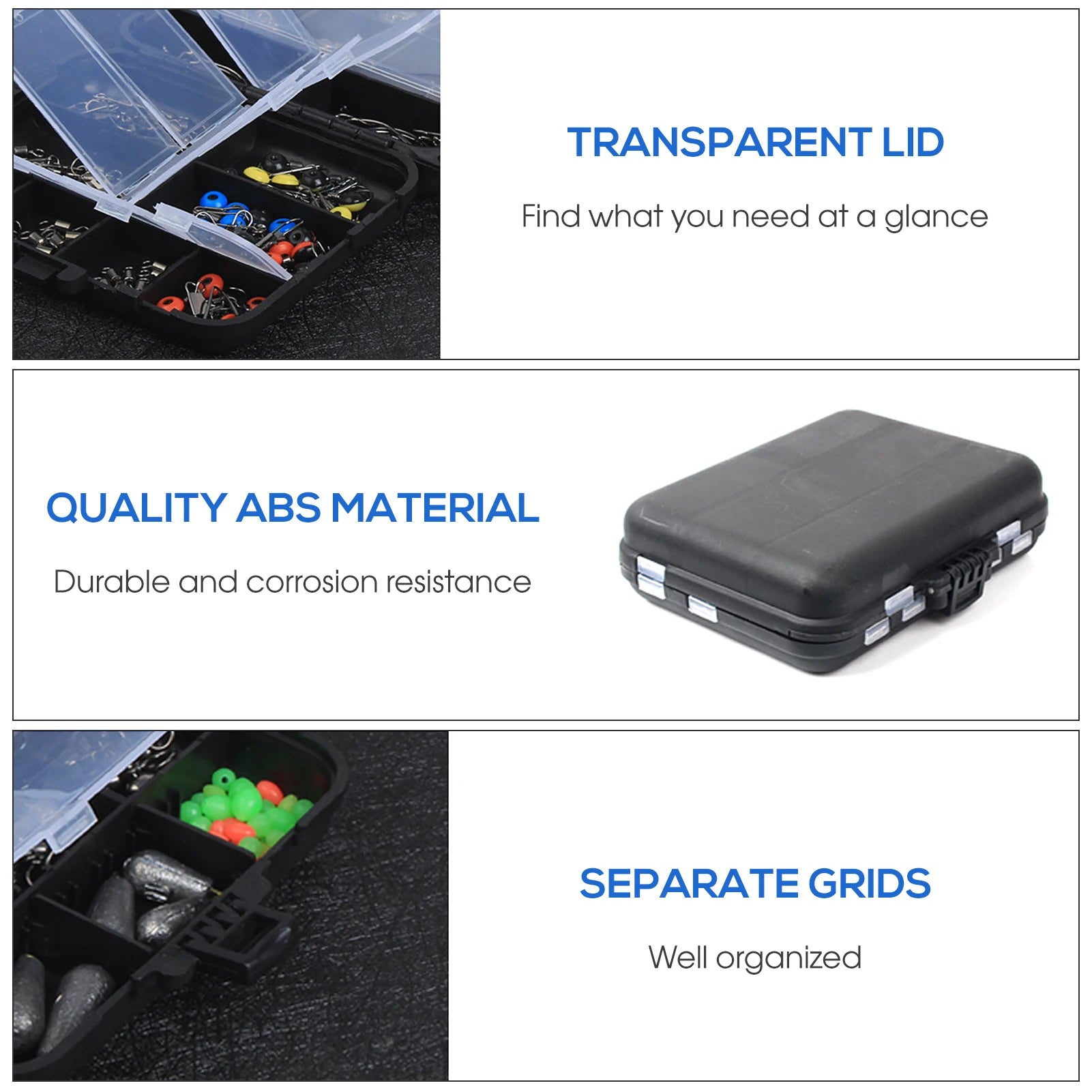 Separate grids keep everything well organized, transparent lid help you identify what you need quickly.