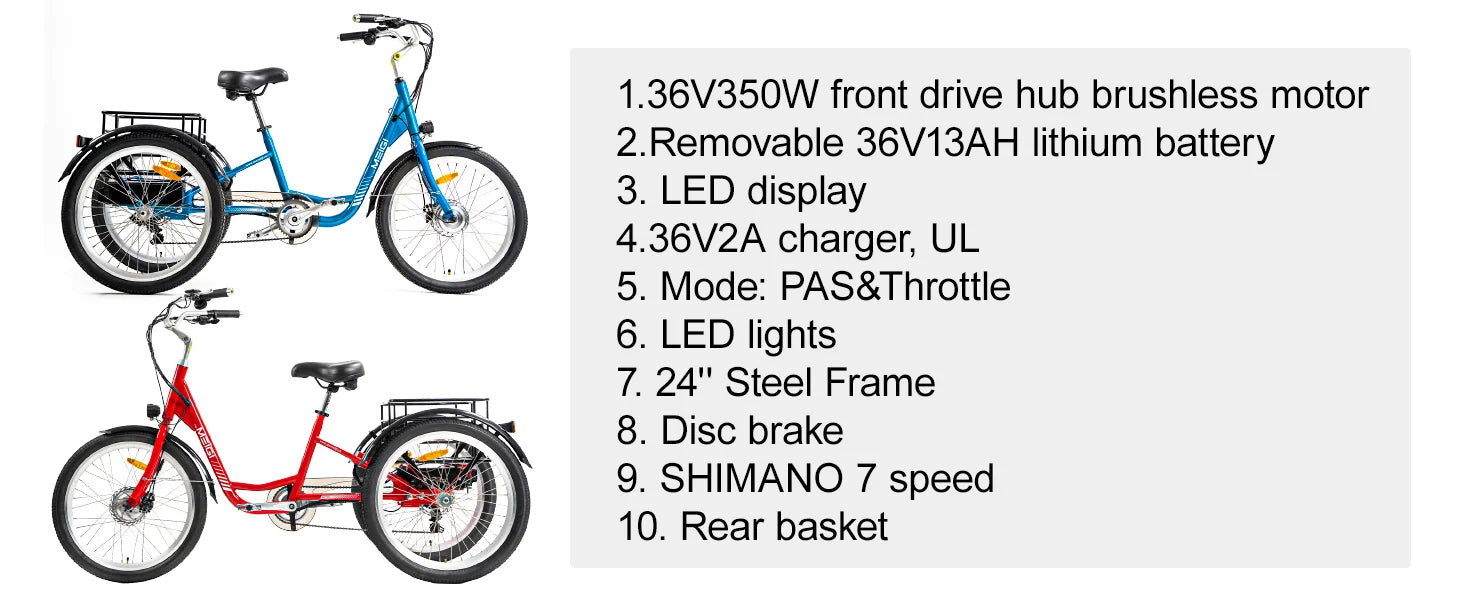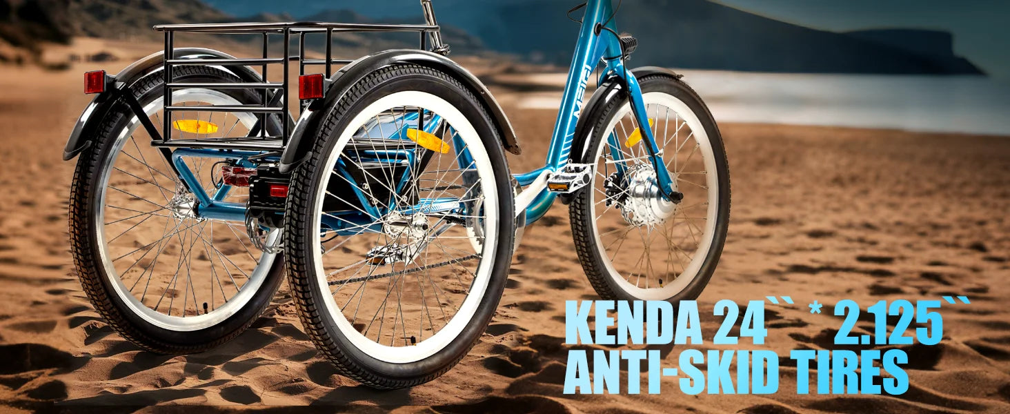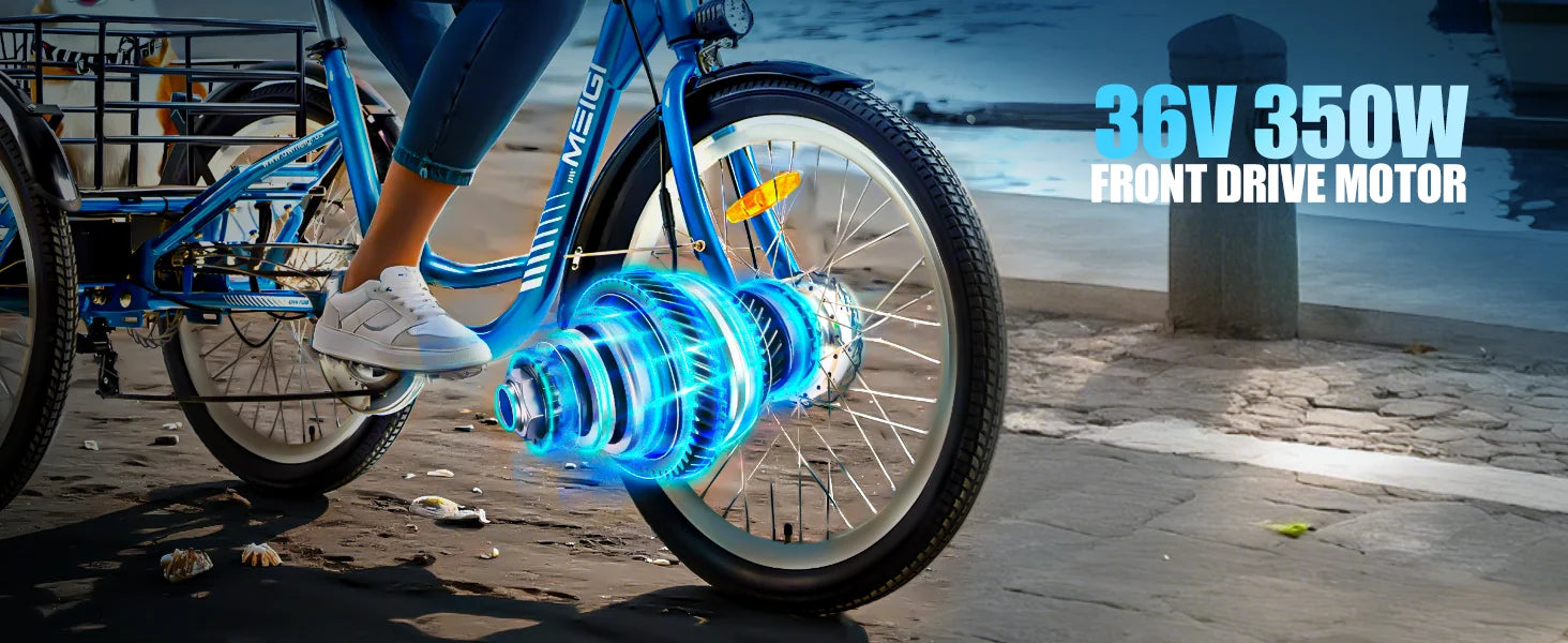 3 Wheel Electric Cargo Tricycle, Powerful Strong 750W Peak Motor 36V 24 Inch Tire Men or Women