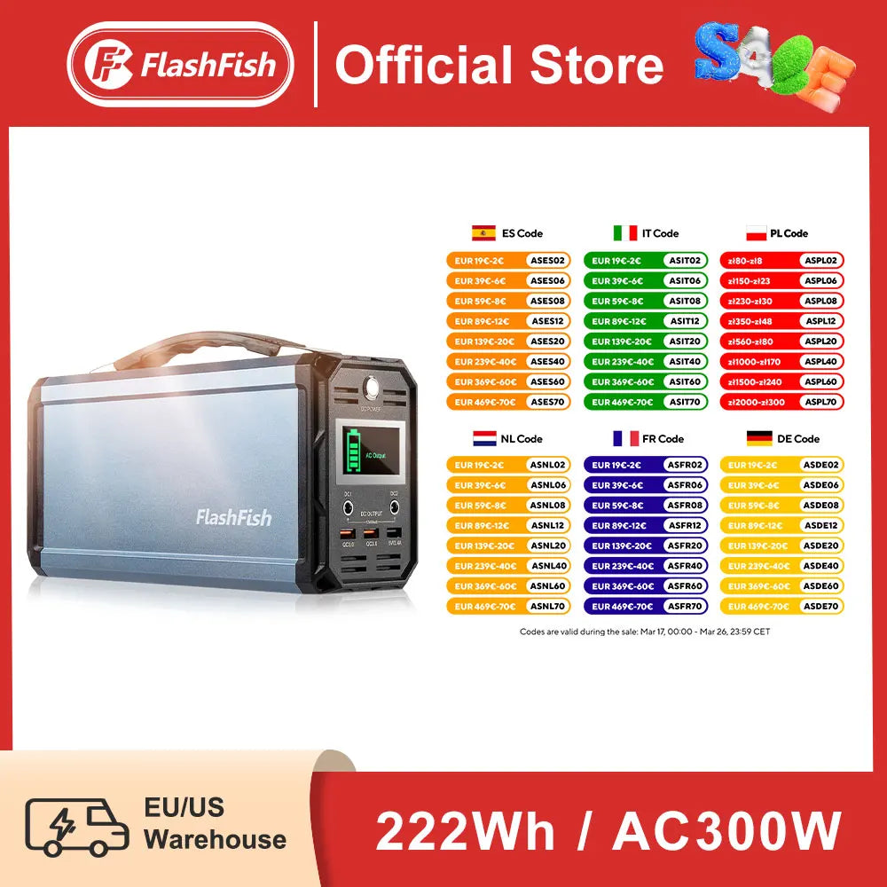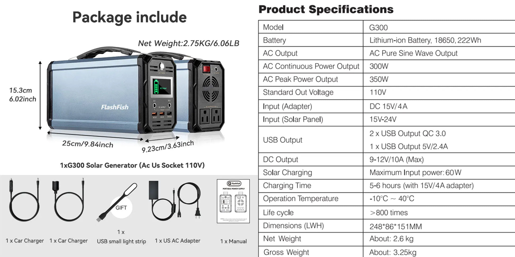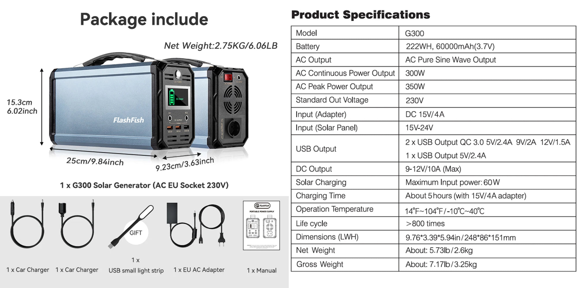 300W Solar Generator 222Wh Portable Power Station 60000mAh Rechargeable Lithium Battery Bank