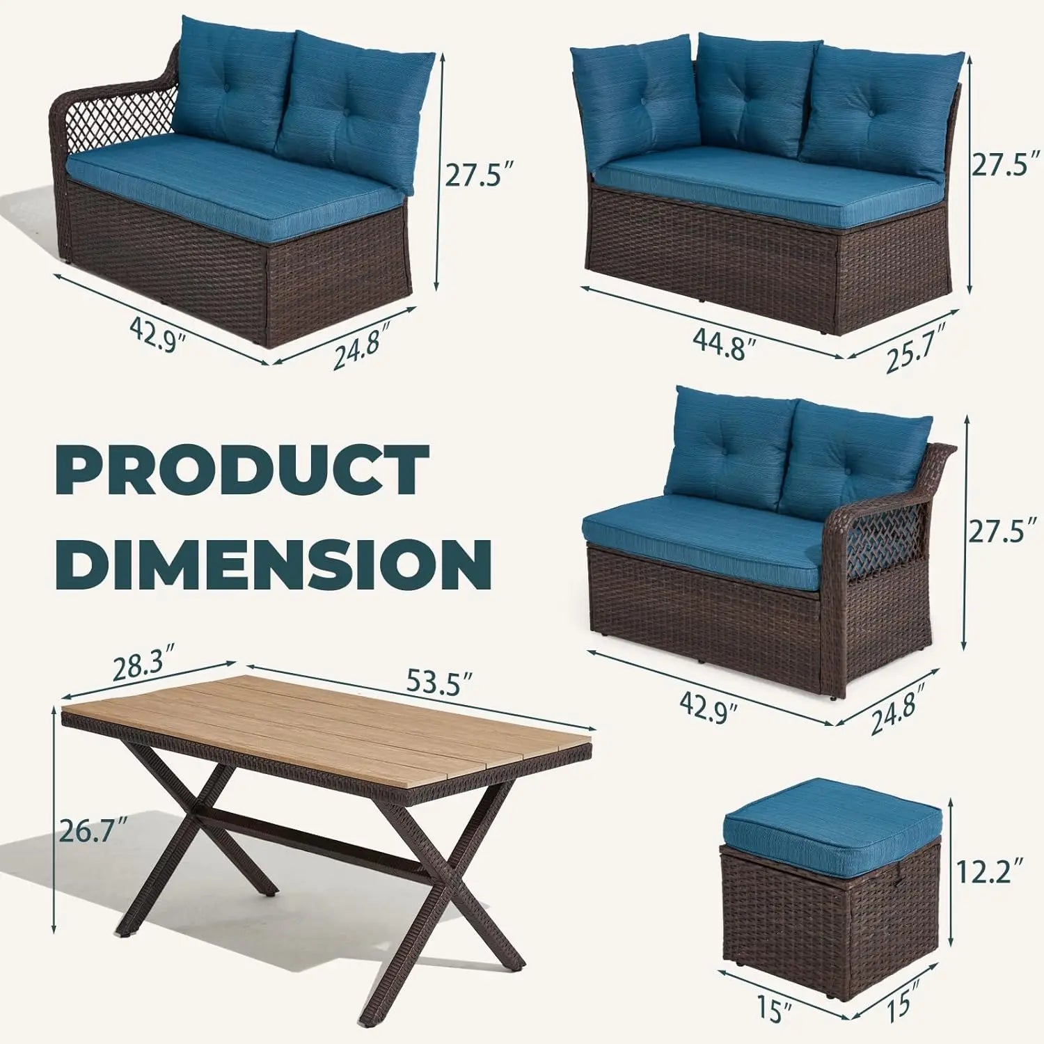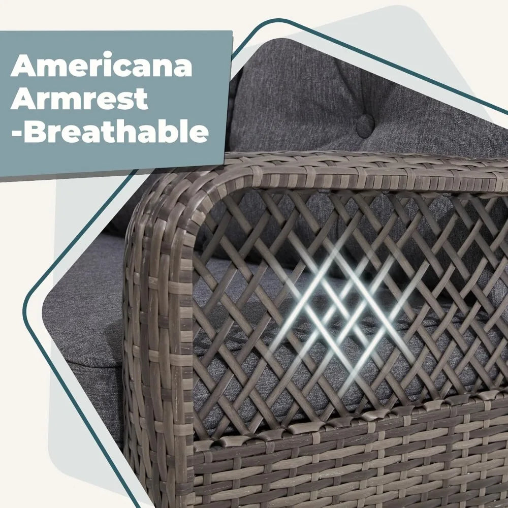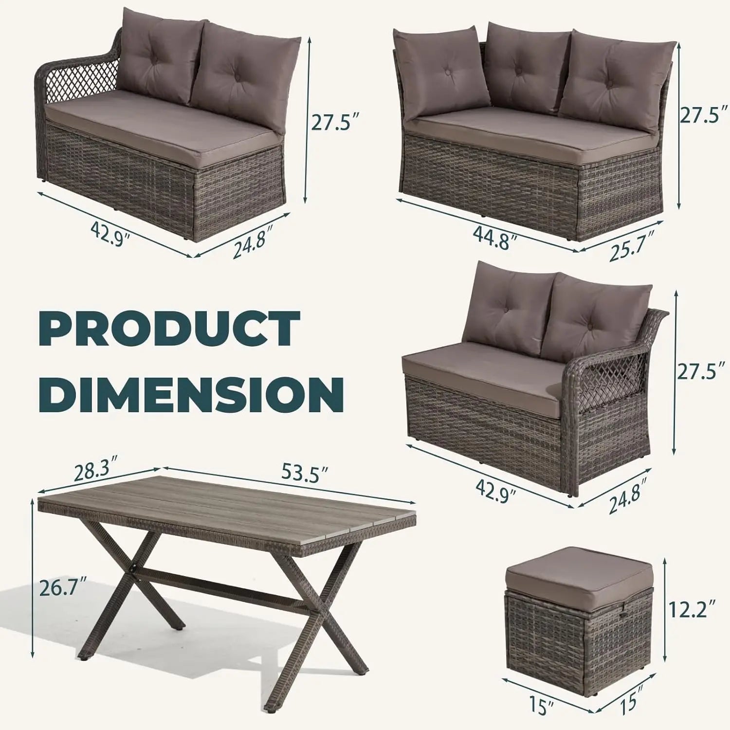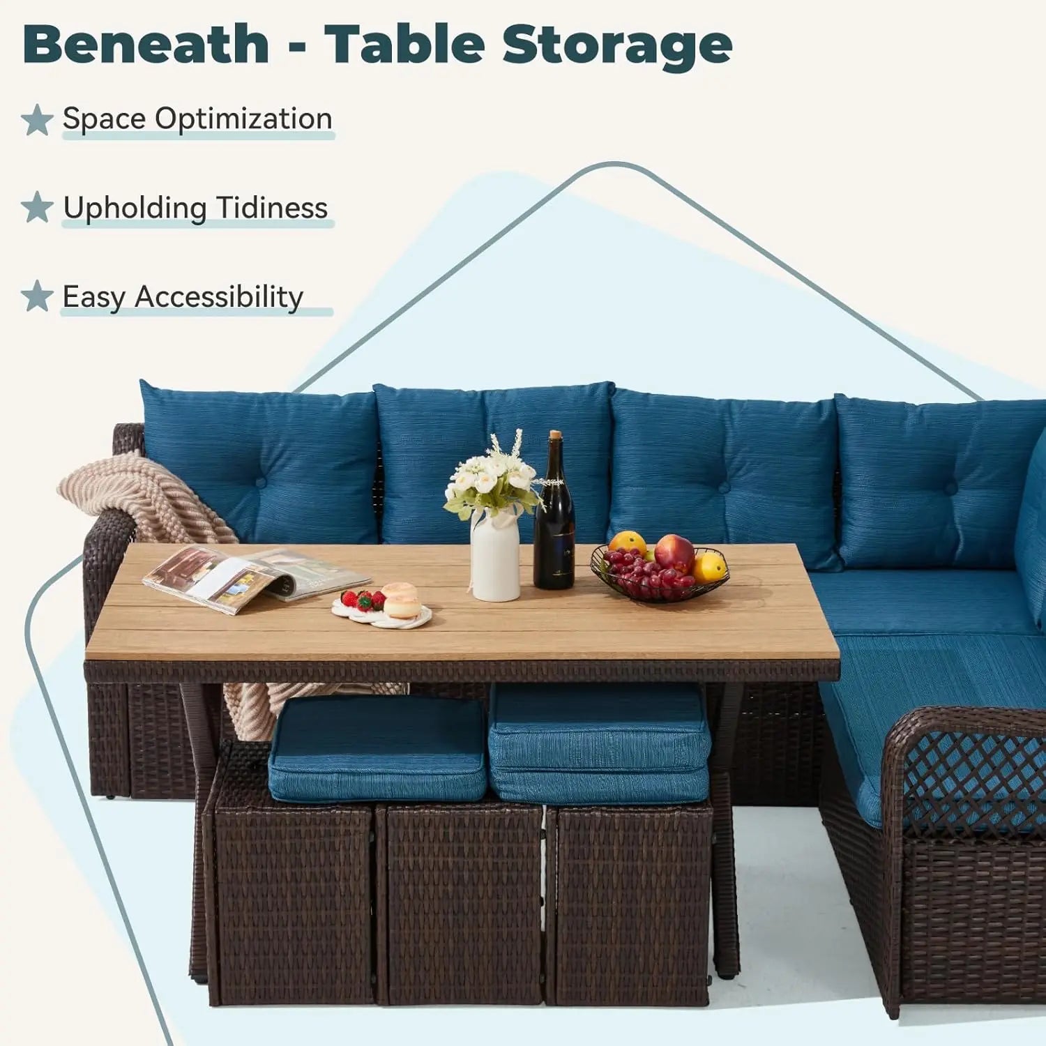 - Space Optimization Feature: The 3 ottomans, along with their matching cushions, can be effortlessly stashed under the table when they're not in use. In this way, you can make the most of the limited area and enjoy a more organized and comfortable outdoor environment.