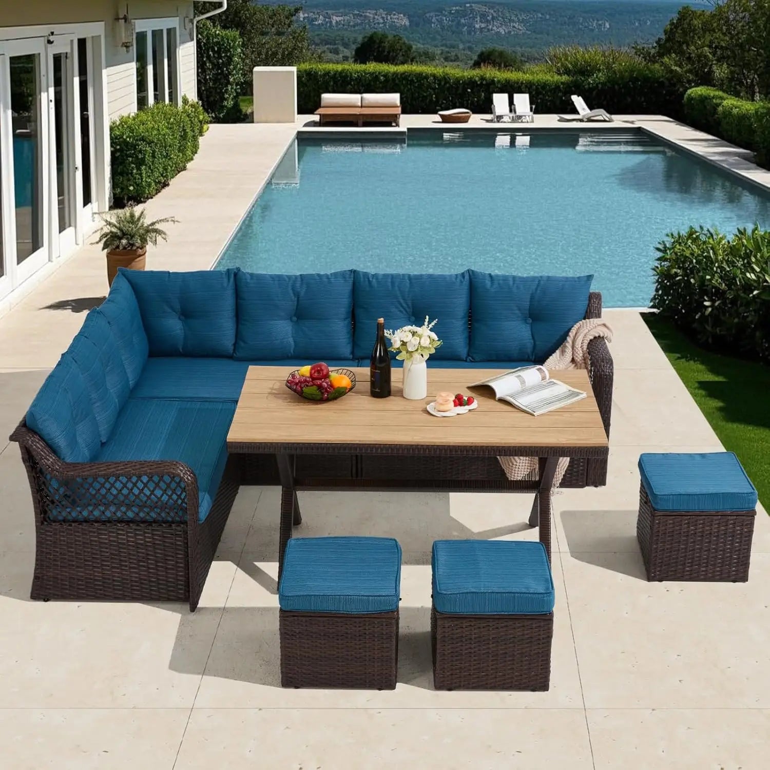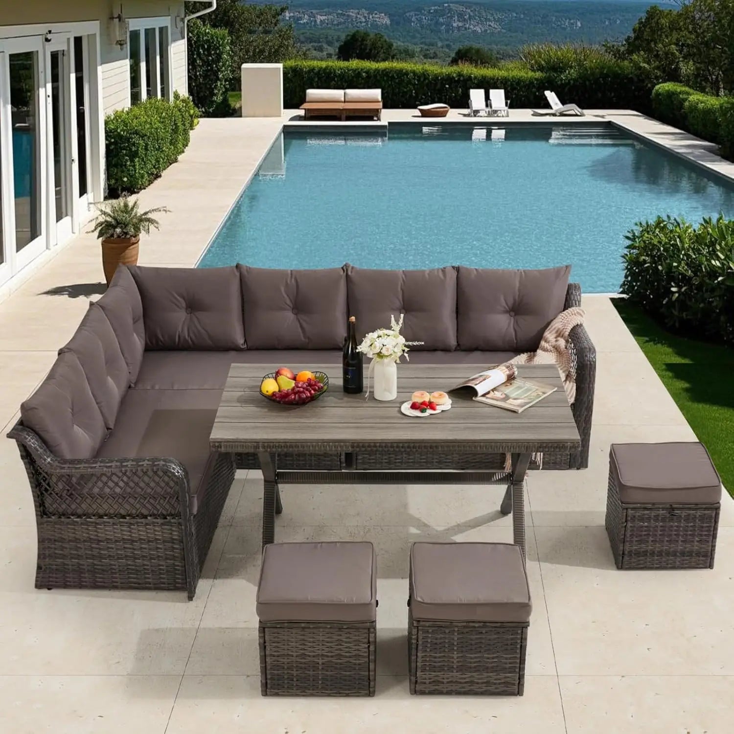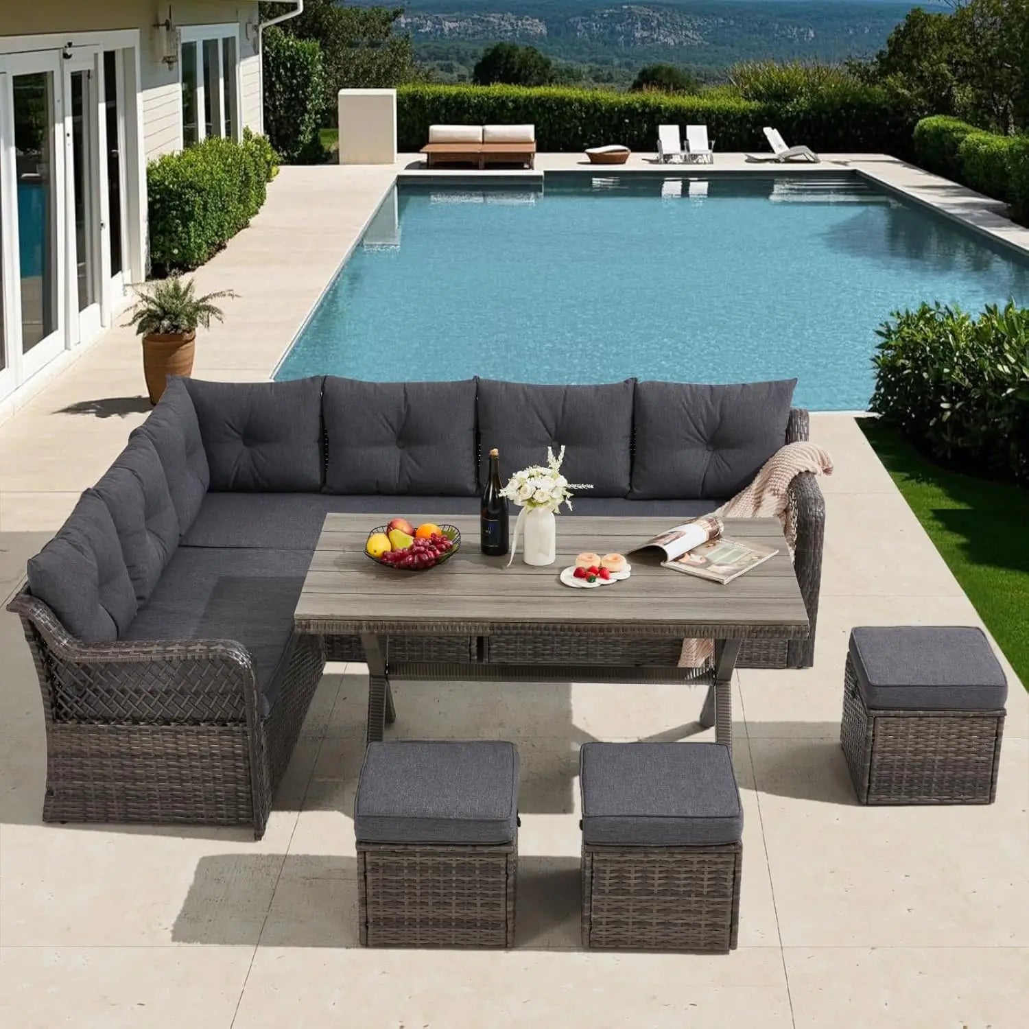 - Space Optimization Feature: The 3 ottomans, along with their matching cushions, can be effortlessly stashed under the table when they're not in use. In this way, you can make the most of the limited area and enjoy a more organized and comfortable outdoor environment.