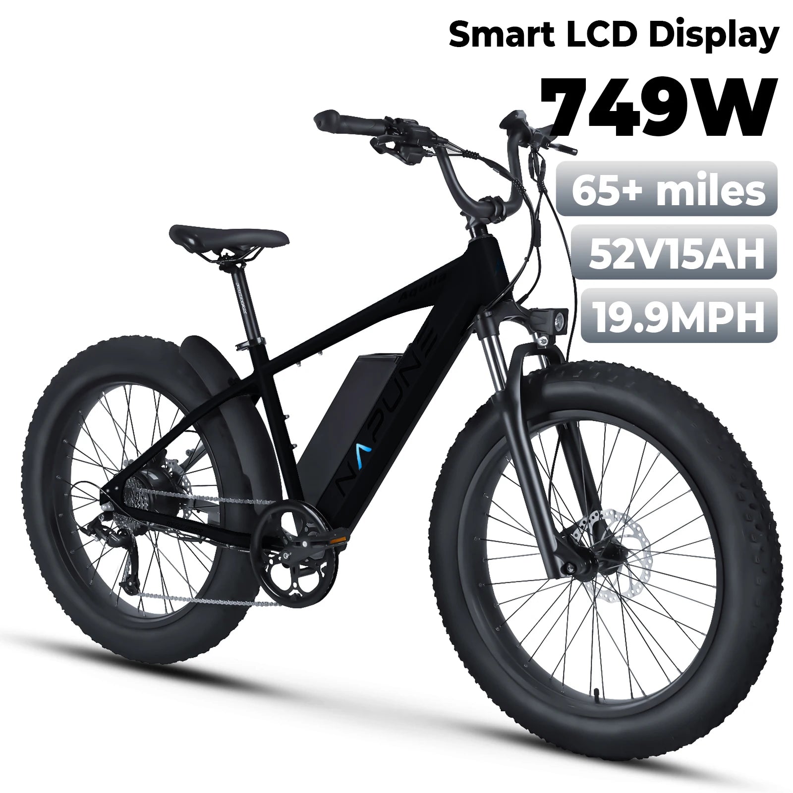 750W off-road E-bike 52V 17Ah 26 inch 4.0 fat tire, USB port, Bluetooth APP LCD screen 9-speed