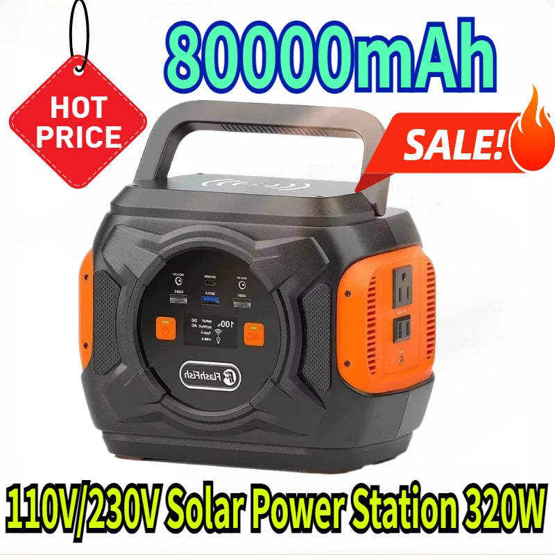 292WH(80000mAh) AC Battery Pack Charger Power Bank Camping 110V/230V Portable Solar Power Station 320W Emergency Solar Generator