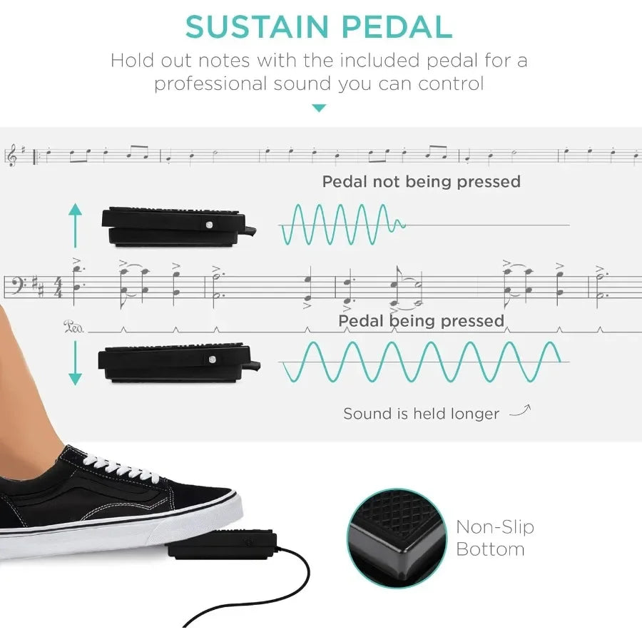 SUSTAIN PEDAL: Detachable pedal simulates a damper-free sound adjustment, creating notes and tones that can fade gradually or stop suddenly