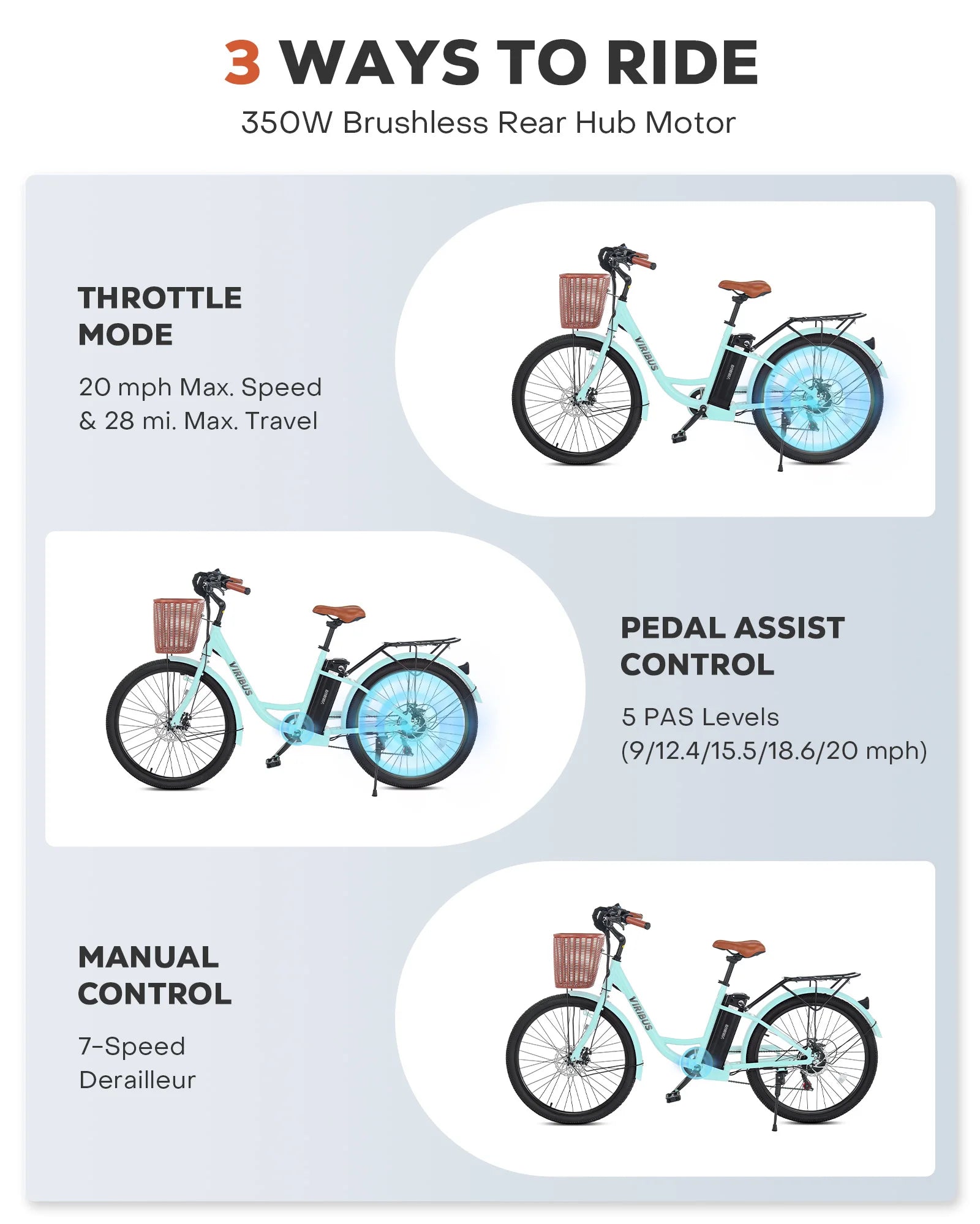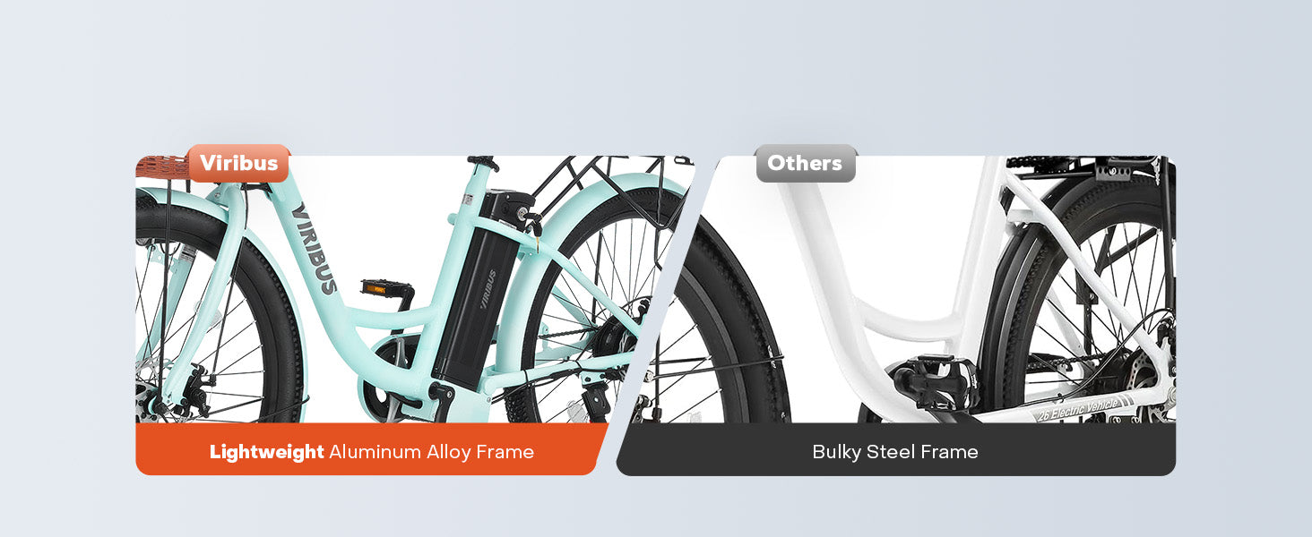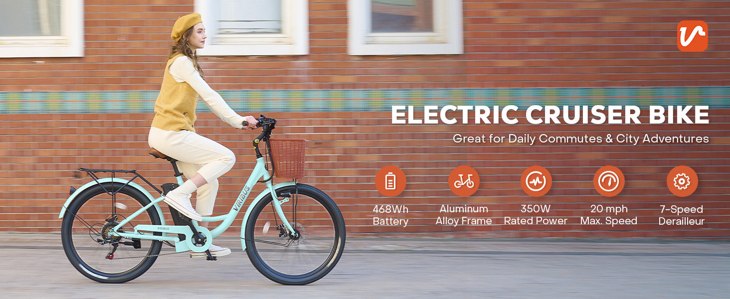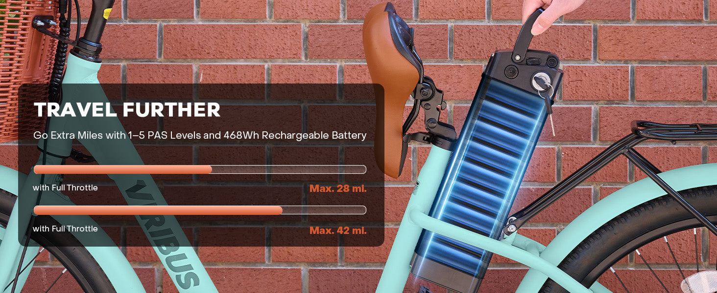 Get ready to revolutionize your daily routine with Viribus's adult electric bike! This 26 inch ebike features a powerful 36V battery that delivers a pedal assisted range of 50 miles and a full throttle range of 28 miles, making it an ideal solution for daily commuting, grocery shopping, and leisurely rides.