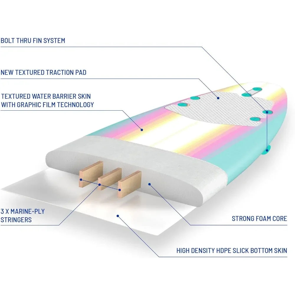 Soft Foam Construction Classic Surfboard, strong EPS core with 3 stringer system