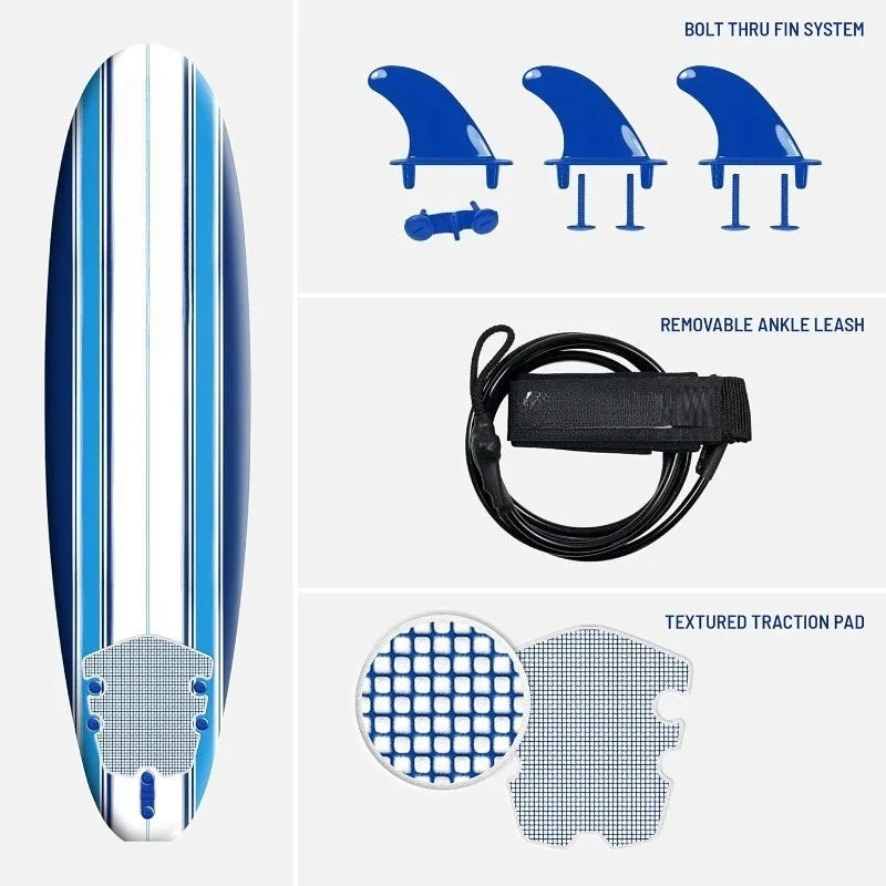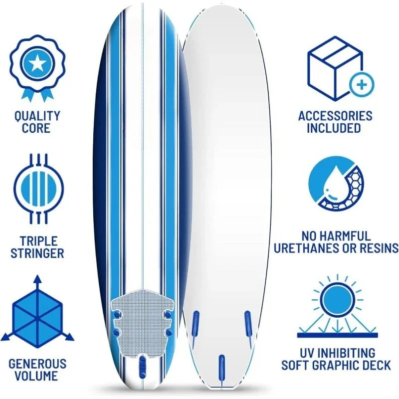Beginners and All Surfing Levels Complete Set Includes Leash Classic Soft Top Foam 7ft Surfboard Surfboard for