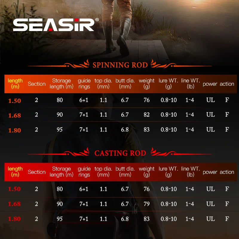 SEASIR Black Arrow Fishing Rod 4.92FT 76G Lure Weight 0.8-10g UL Carbon Fiber FUJI O Guide Rings BFS Two Sections Sound Knob Light Micro Fish Pole(1.5m/1.68m/1.8m)