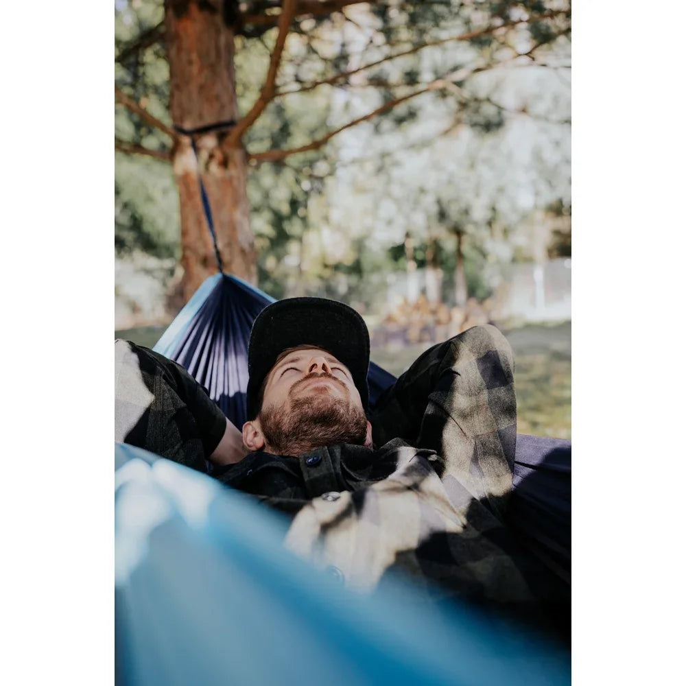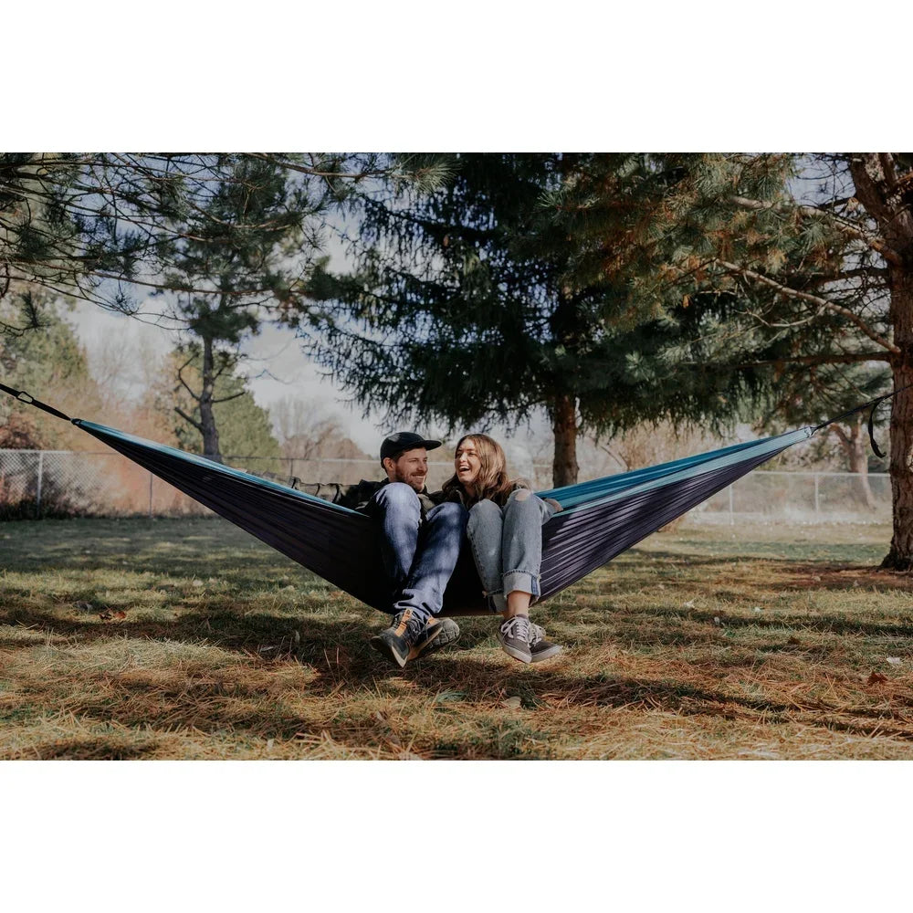 Elevate your time outside with this ® Nylon Double Hammock. The nylon construction is soft, lightweight, breathable and fast drying. The double size construction supports up to a 500-pound weight capacity. We’ve attended to all of the details, such as included suspension cords, tree straps and carabiners, and also designed a built-in pocket that doubles as a carry bag. The entire hammock compresses down compactly to be stuffed inside of the carry bag pocket for easy portability. This model can be used with a hammock stand or hung between two trees with the included tree straps. This lightweight design is ideal for camping, backpacking, parks, or for hanging in the backyard.