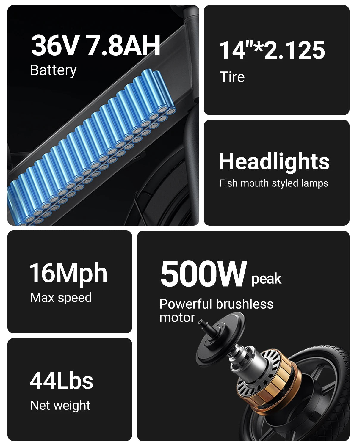 Special Feature:Adjustable Seat, Dual Disc Brake, Fenders, Headlight, Rechargeable