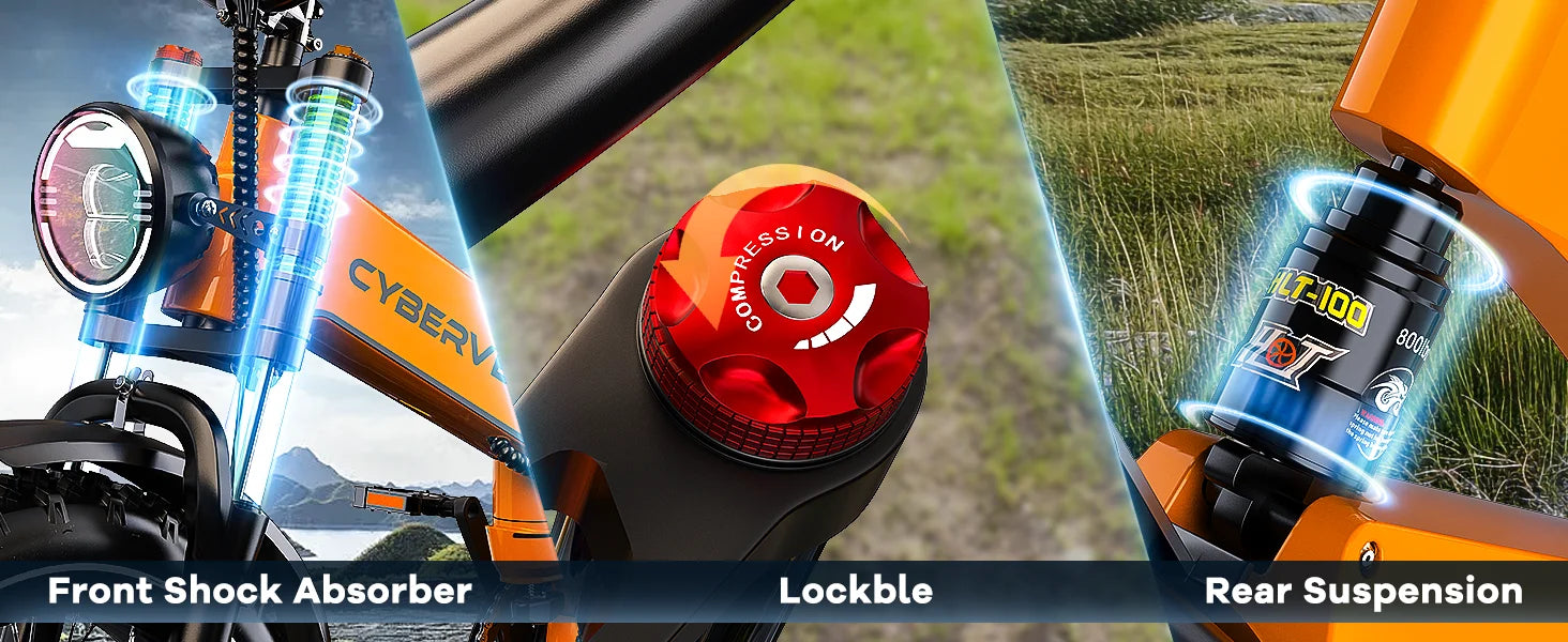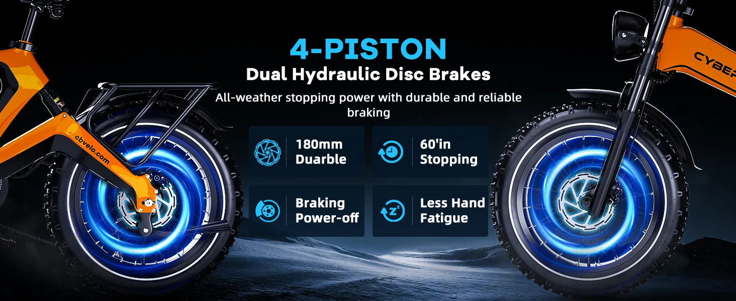 4.Dual Suspension & Hydraulic Disc Brakes: Electric bike for adults experience ultimate comfort and safety with advanced front and rear dual suspension, designed to absorb shocks from bumpy roads and rough trails. The hydraulic disc brakes deliver powerful and responsive stopping with minimal effort, ensuring precise braking control in all conditions. Ideal for high-performance e-bikes, electric mountain biking, off-road riding