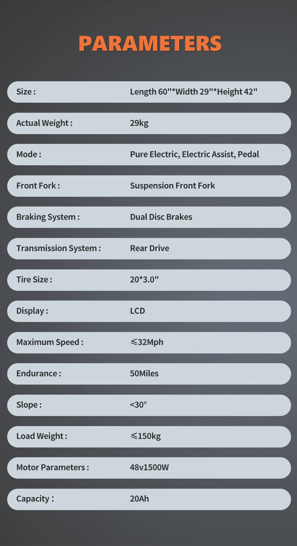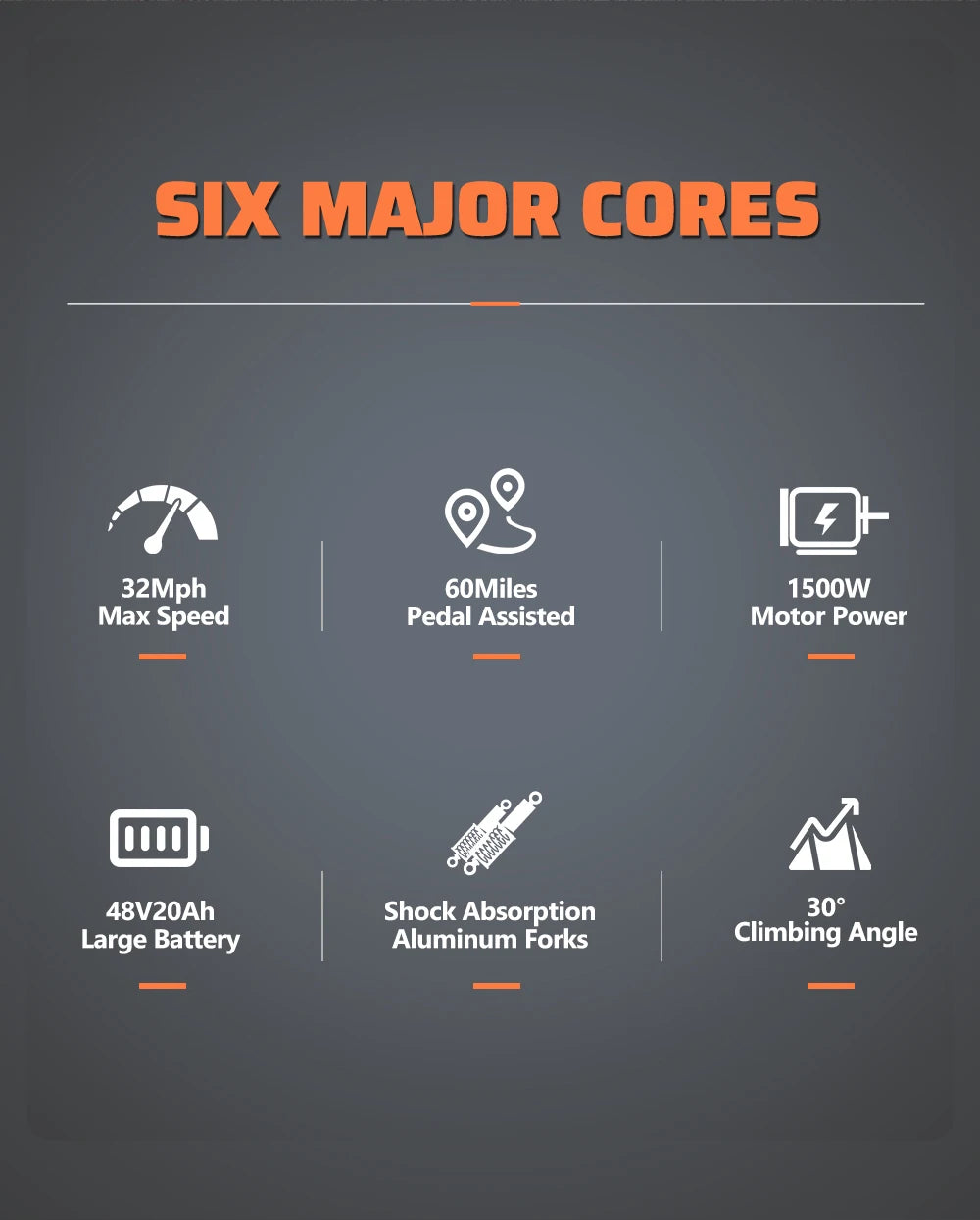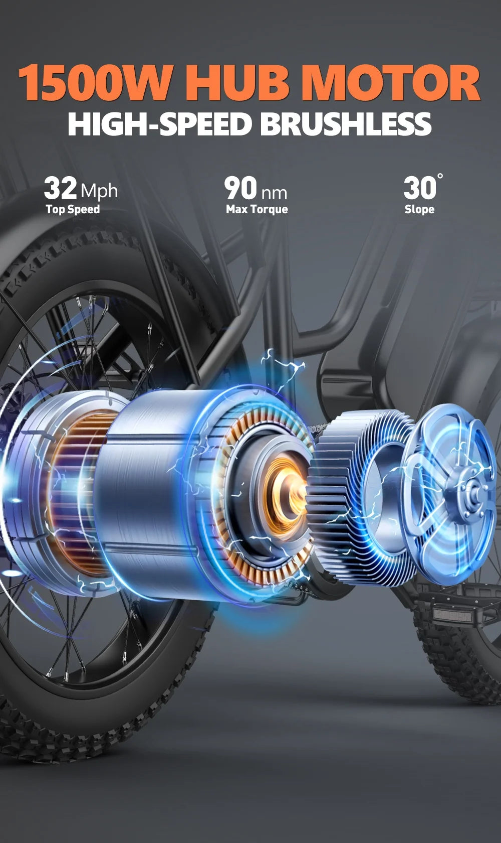 Electric Bike for Adults 20'' 1500W Peak Ebike, to 50 Miles 32MPH Electric Mountain Bike 48V 20AH