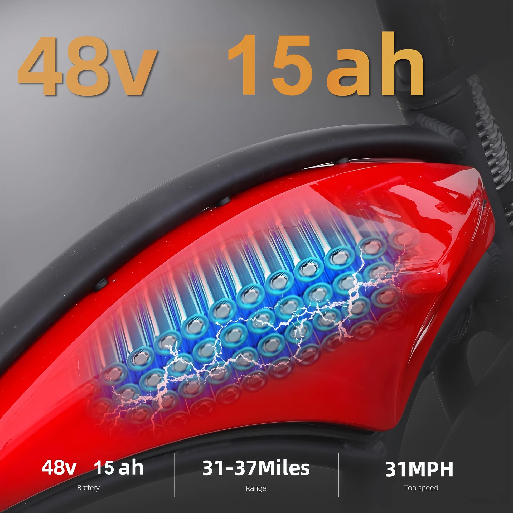 Electric Mountain Bike, 750W 31MPH Class 3,48V 15Ah 37Mile Fat Tire Bicycle, Dual Suspension 7-Speed
