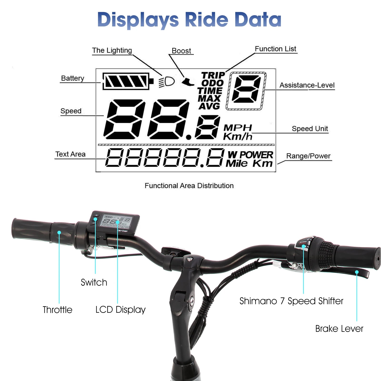 Electric road bike, detachable lithium battery,Including shelves, 250W, with LCD display