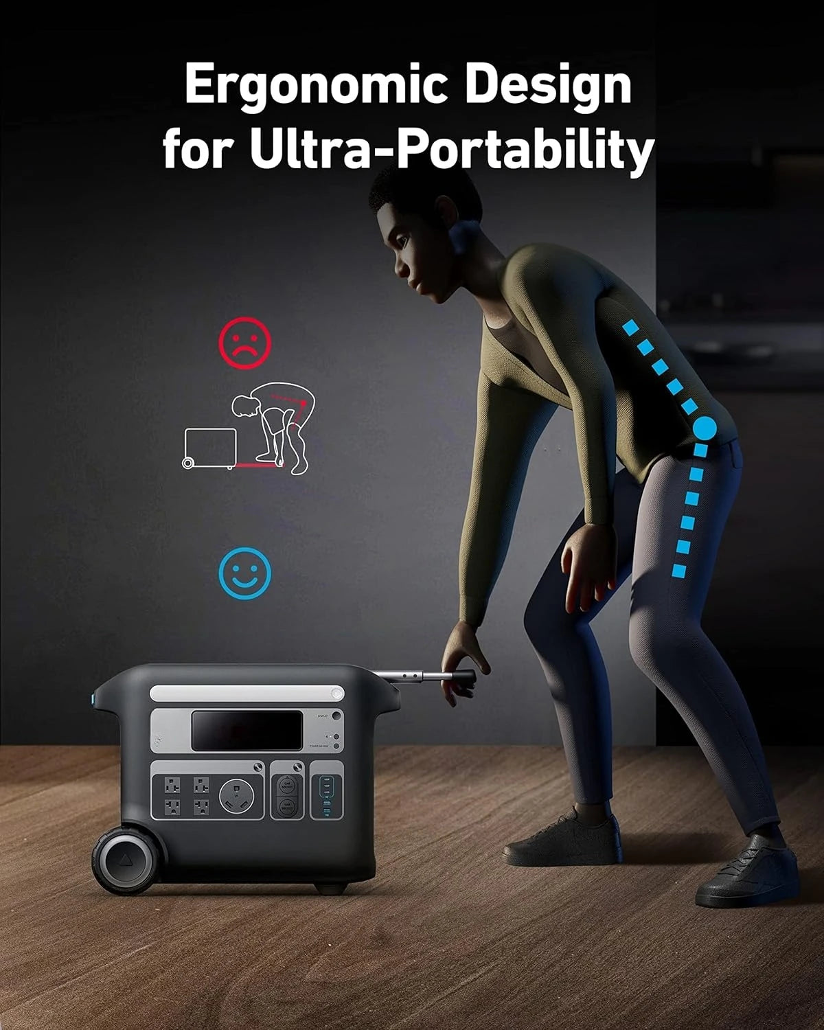 - [Power Up to 12 Devices] - The 2400W output and an exclusive RV port, 4 AC ports, 3 USB-C charging ports, 2 USB-A ports, and 2 car outlets can power almost all your devices at once. Power high-wattage devices up to 3600W without overloading the portable power station thanks to SurgePad technology.