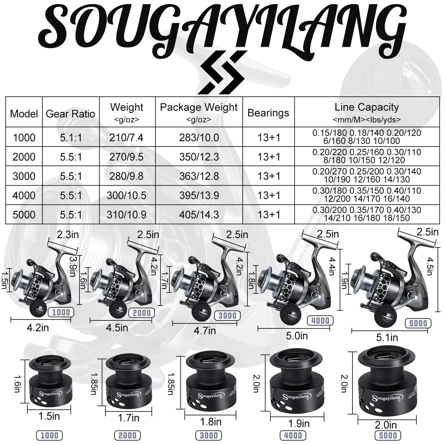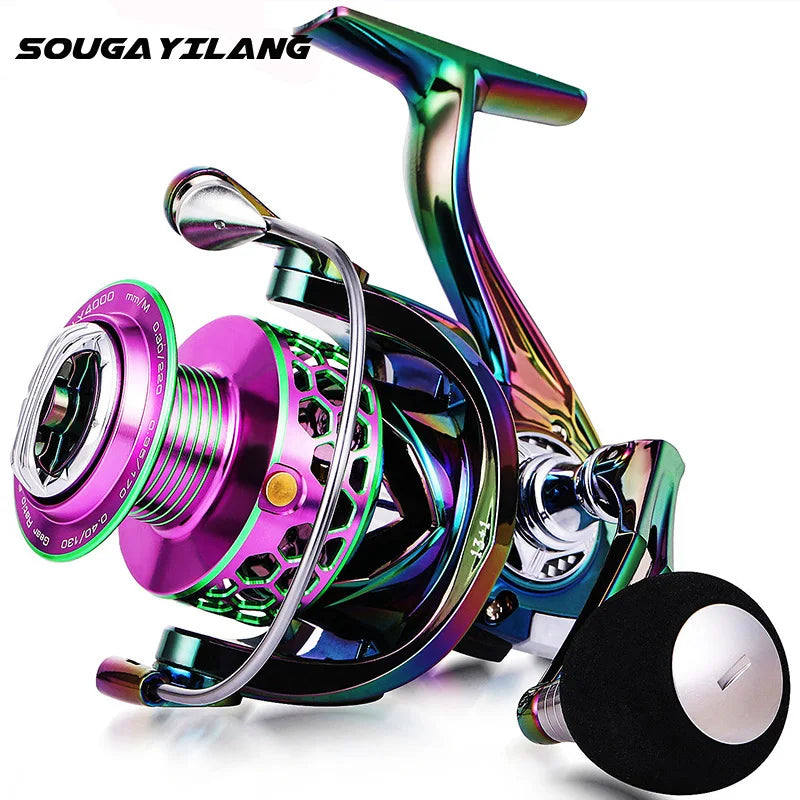 Sougayilang Fishing Reel Colorful Aluminum Spool Ultra Smooth Light Weight Spinning Reel 13+1 BB for Carp Bass Trout Fishing