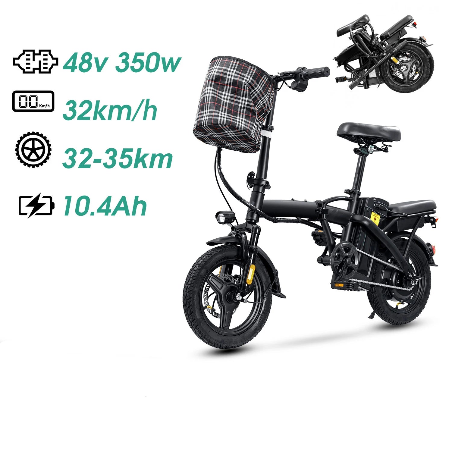 Folding Electric Bike With Basket 350W , 48V 10.4AH Commuting Lightweight Cycling Escooter