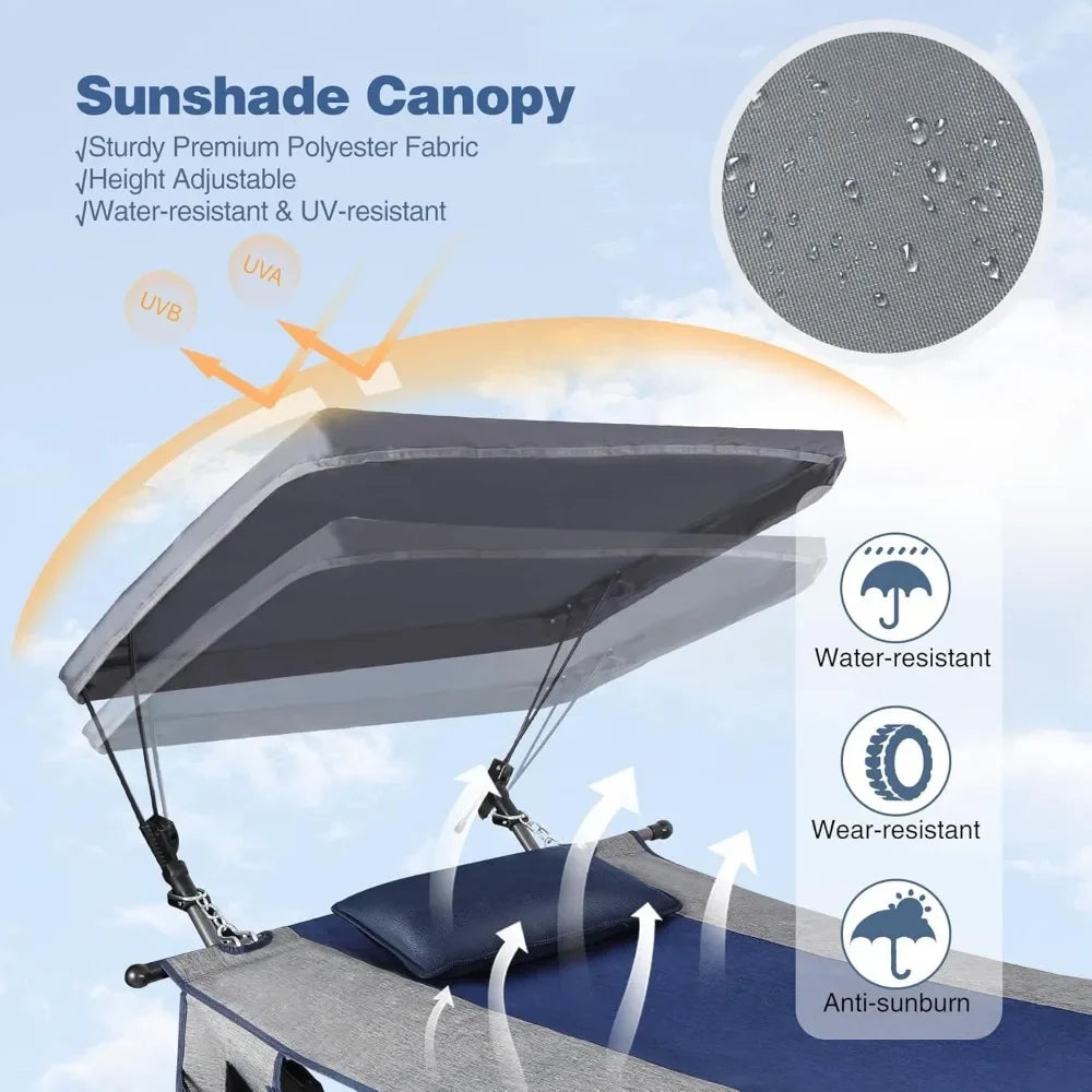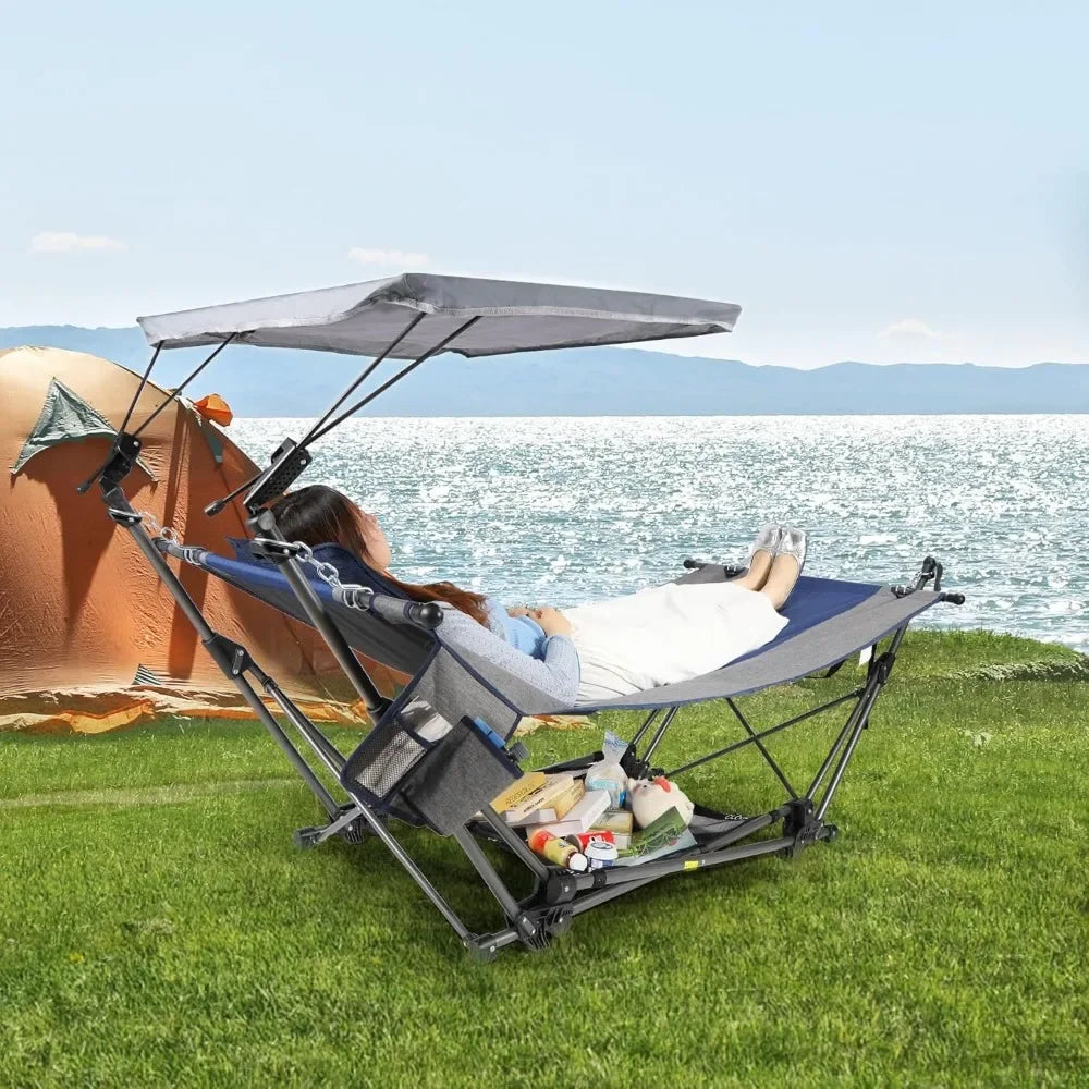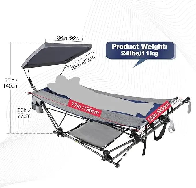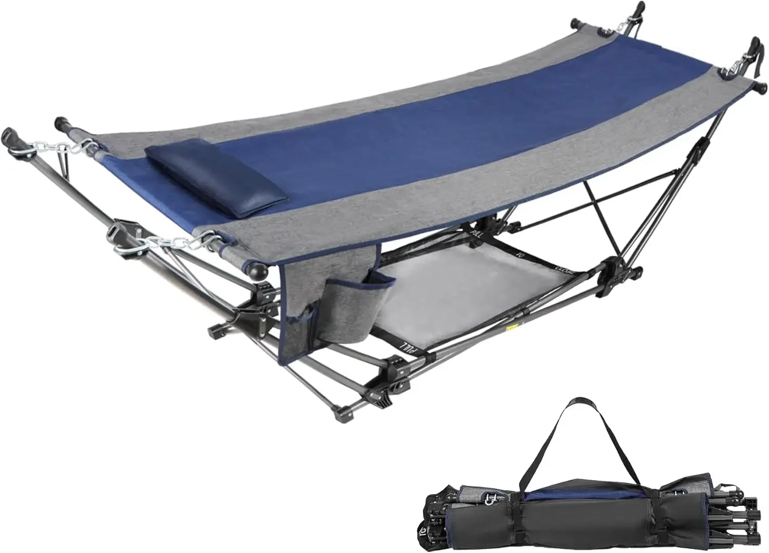 Folding Hammock, Removable Canopy,Pillow, Freestanding, Collapsible Stand for Outdoor Yard Beach