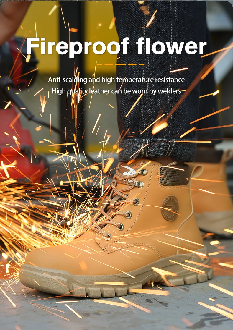 High-top PU anti-smash anti-puncture breathable safety shoes