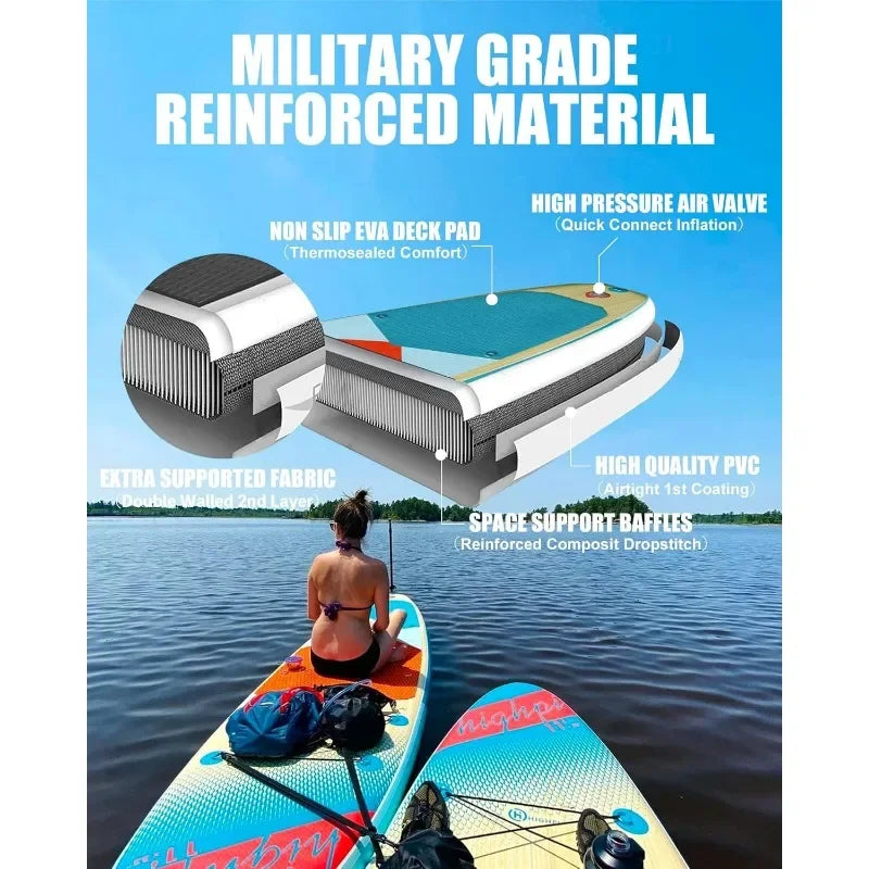 【Military Grade Drop-Stitch Material 】 6” (15cm) premium drop stitch core material technology, ensures super lightweight, durability and stiffness
