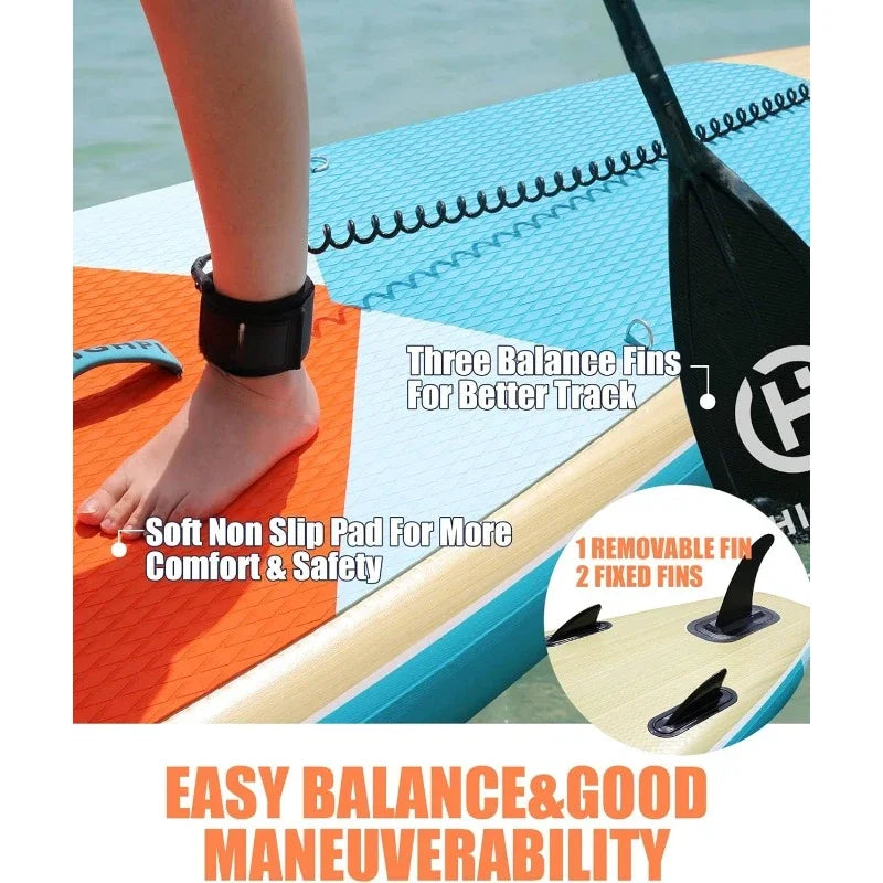 【38''extra Wide Design For Better Balance】10'10"x 38'' x 6'‘ weight capacity is up to 350 pounds. Extra 38‘’ wide design makes it easy for keeping balance. This board is ideal for paddling and fishing person.