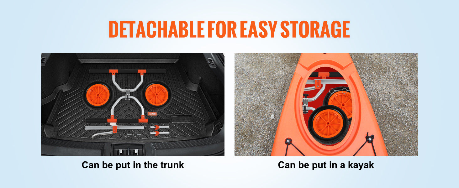 Detachable for Easy Use: The detachable design is convenient for you to store and transport. You can directly put this cart on your cars or kayaks for easier carrying. The upgraded single foot support allows you to stop and fix the cart anytime; thanks to this feature, the cart can also be firmly locked without falling, even on uneven road sections.