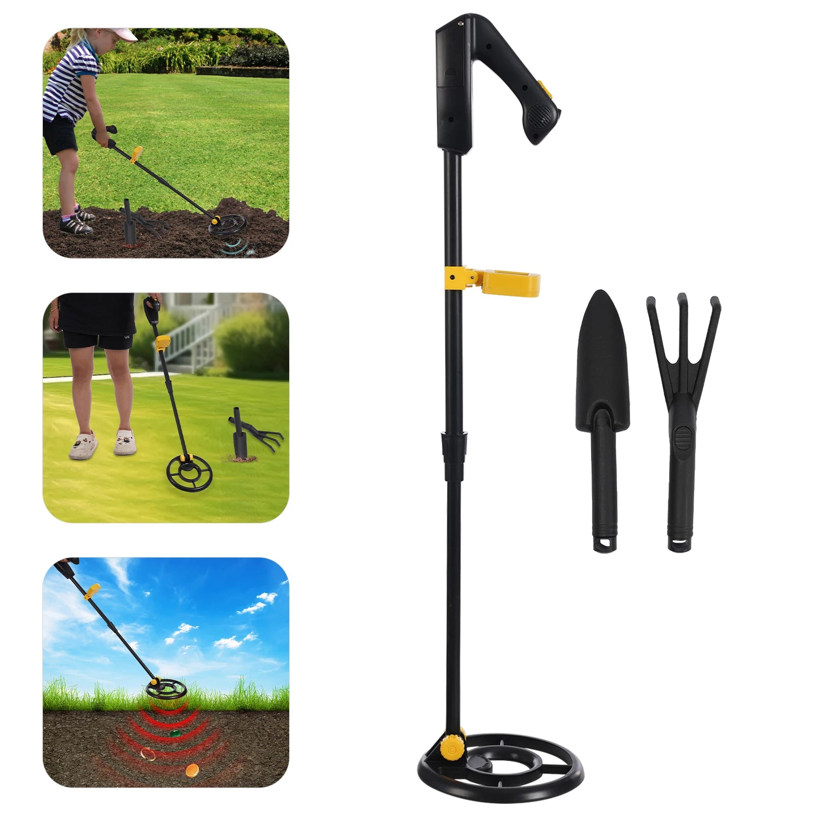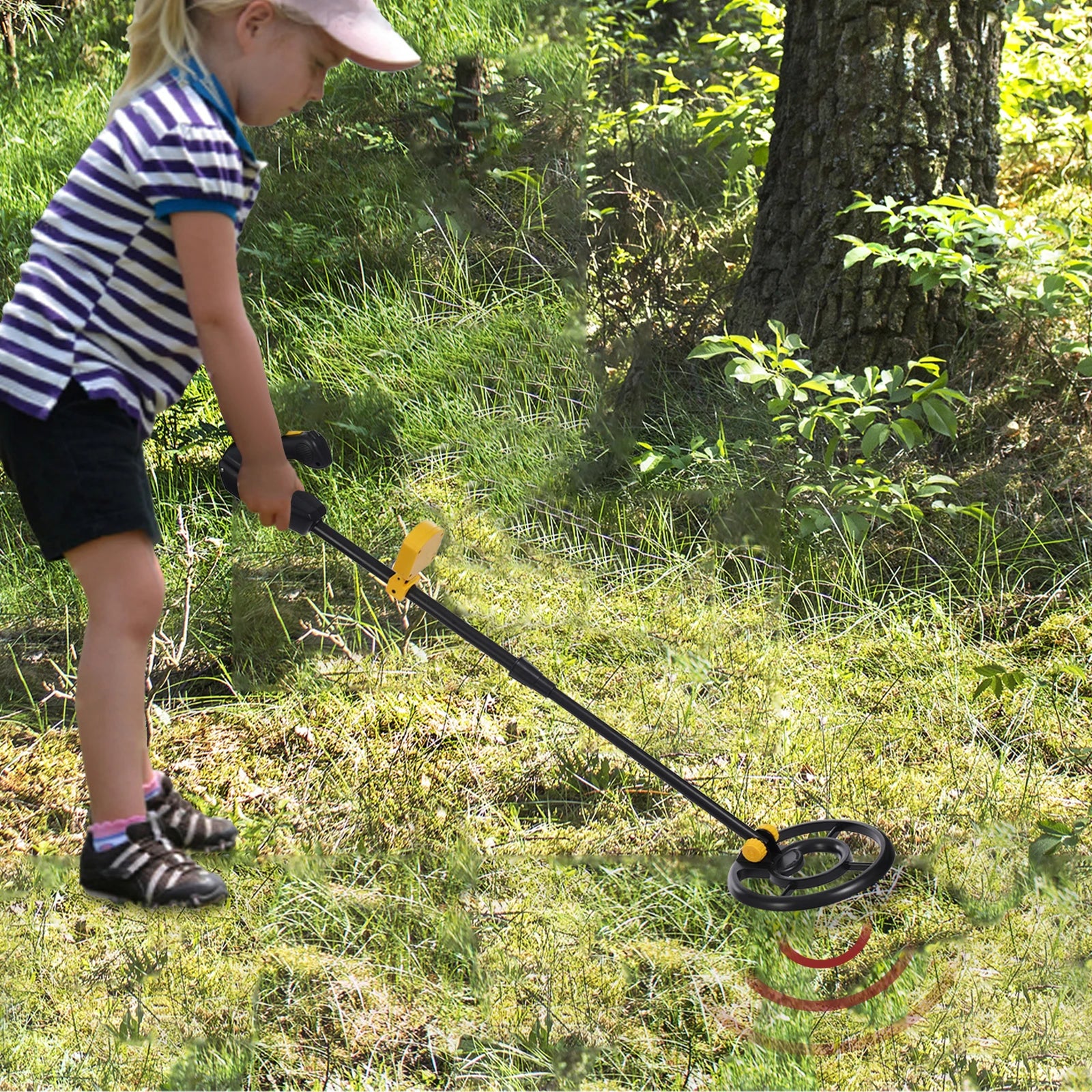 Thoughtful Design: It's adjustable between 28-35.04 inches in length, adapting to your child's height and allowing them to use it with less effort! In addition, the waterproof detector disk allows it to be used for metal detection in shallow water.