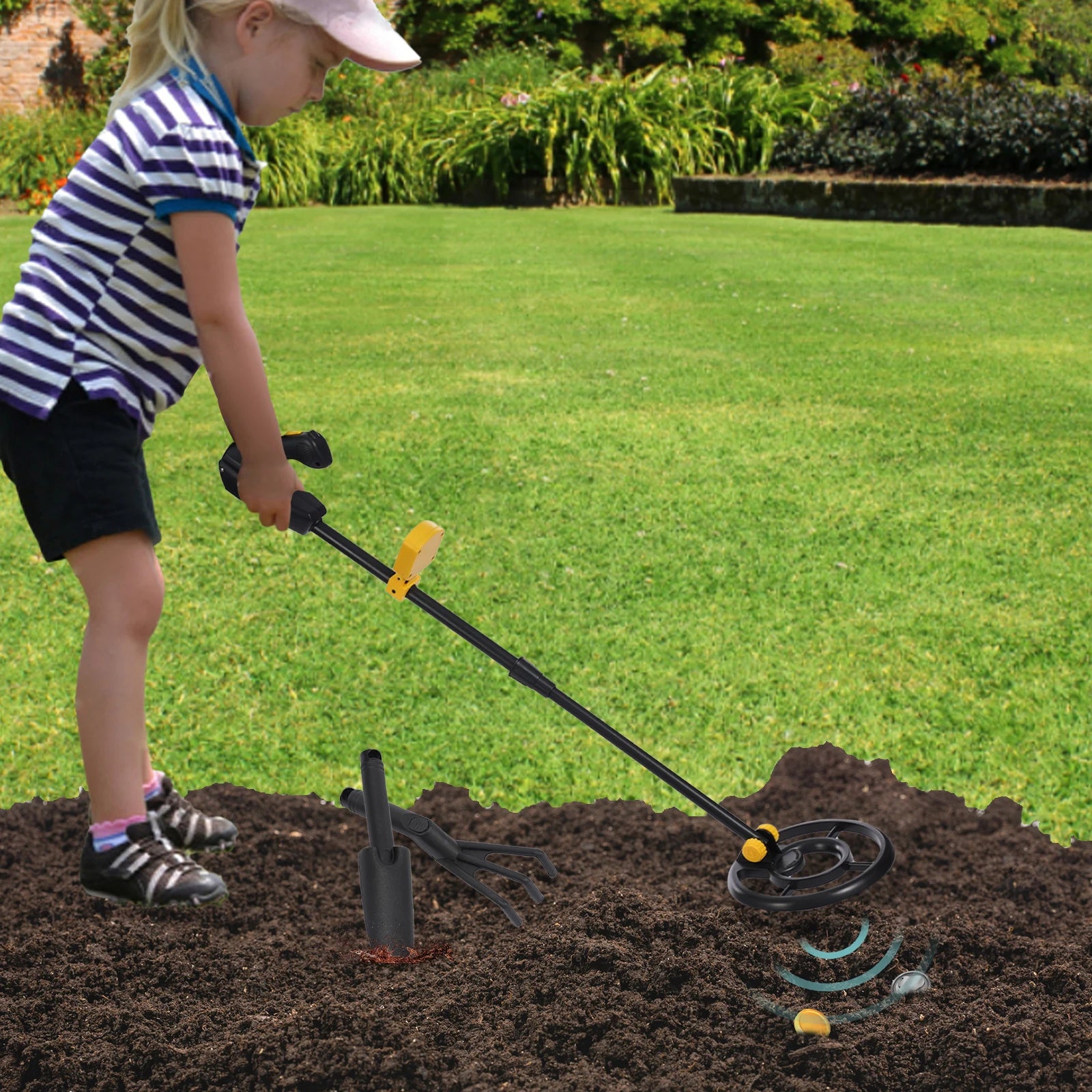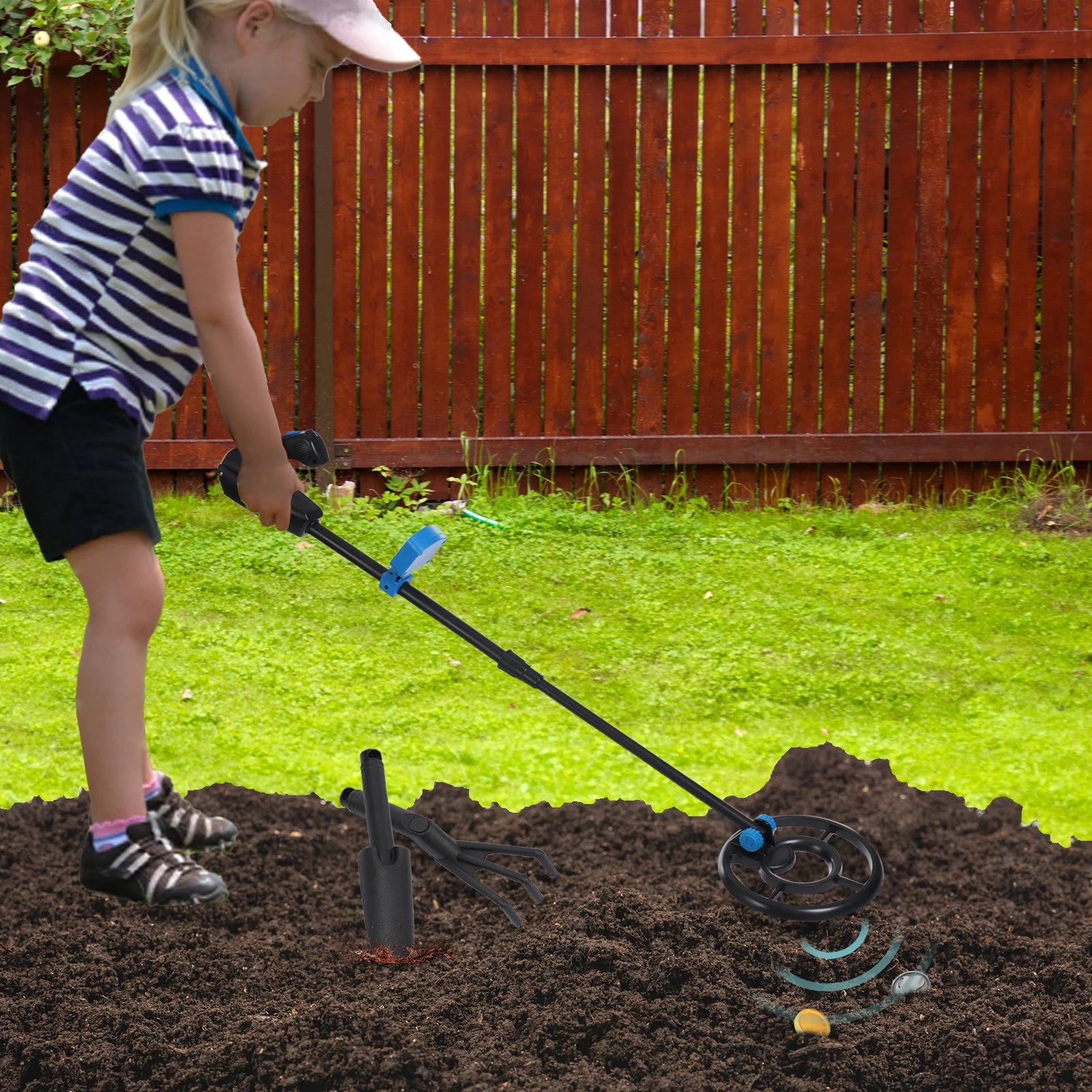 Small Rake and Shovel: They make it easy for your child to plow the soil away if metal is detected.