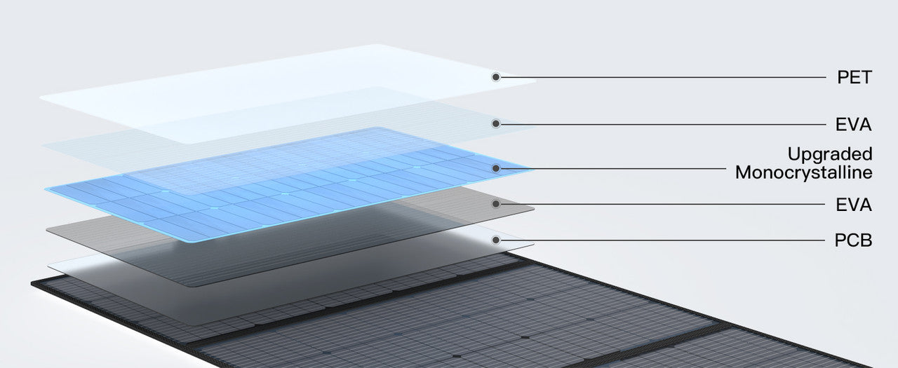 Compact and Lightweight - Featuring a compact solar cell layout, this 400 watt solar panel weighs a mere 28.6lbs and boasts a smaller size than traditional 400W one-piece laminated assemblies, ensuring easy portability on the go. MHPOWOS 400W compact mono portable solar suitcase features EL-tested Grade A+ solar cells, delivering the highest power conversion efficiency and an extended lifespan.