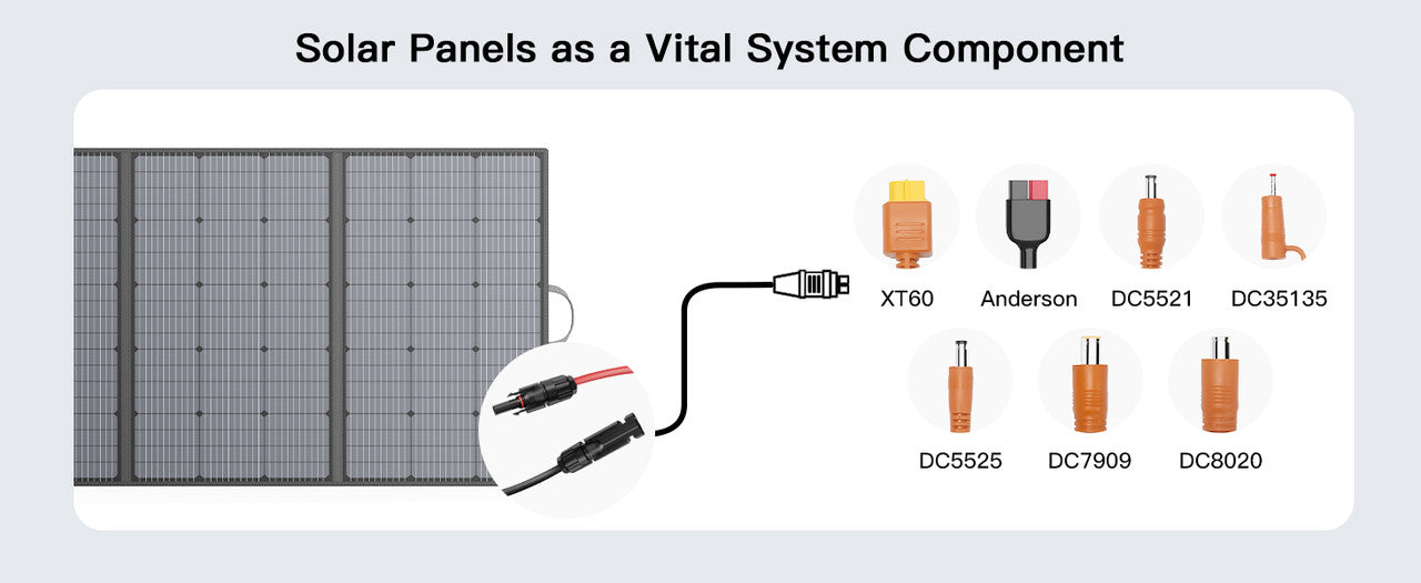 Versatile Connectivity- It is compatible with a variety of power stations. MHPOWOS Foldable Solar panel Equipped with MC-4 to Anderson / XT60 / DC7909 / DC5521 connector, it is perfect match for most portable power stations on the market, such as Jackery, Ecoflow, Bluetti, Anker