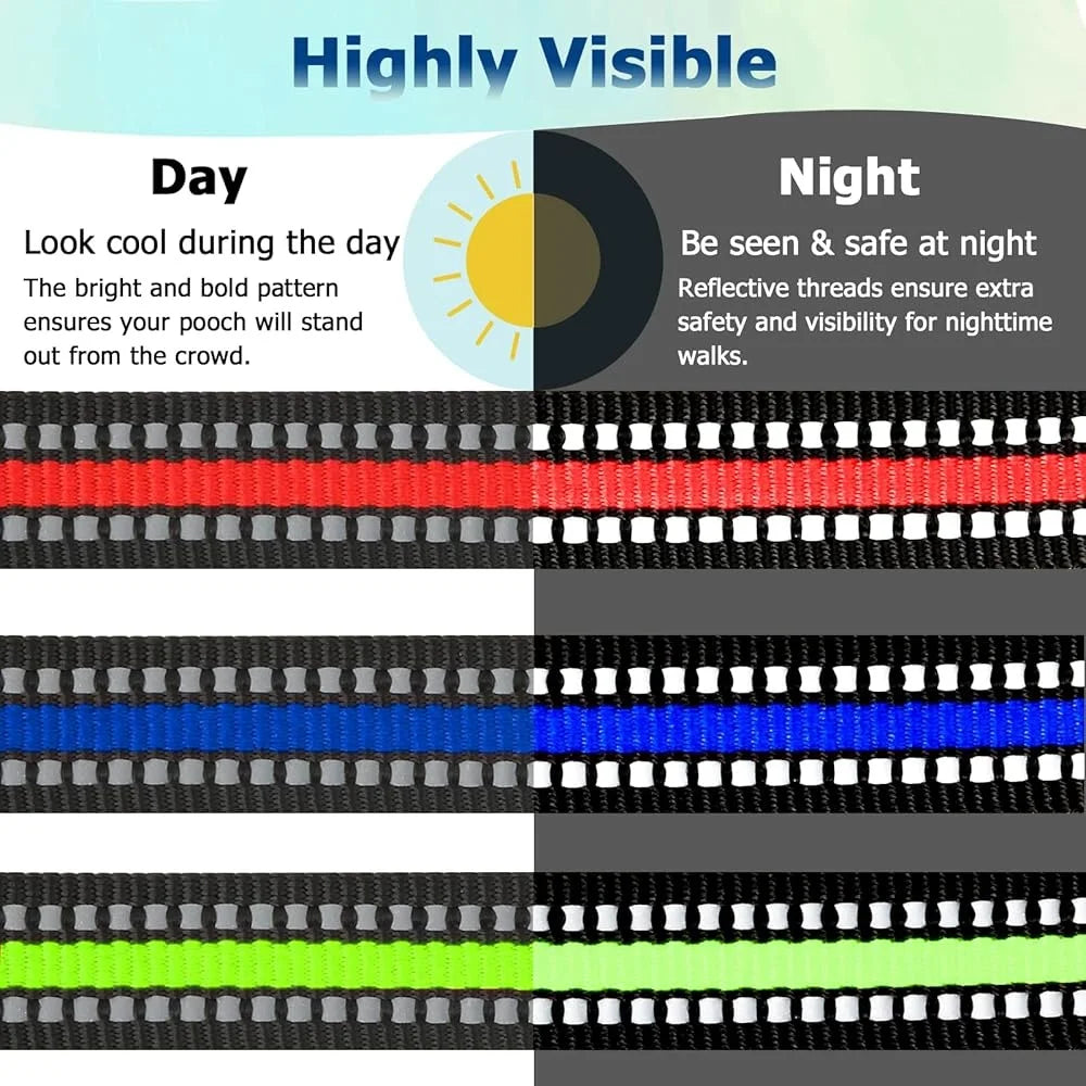 Enhanced Visibility with Reflective Webbing: Safety first! BARKESS dog muzzle leash features two prominent lines of reflective threading that catch the light, ensuring heightened visibility during evening strolls. Feel confident and look effortlessly cool as your dog stands out both day and night