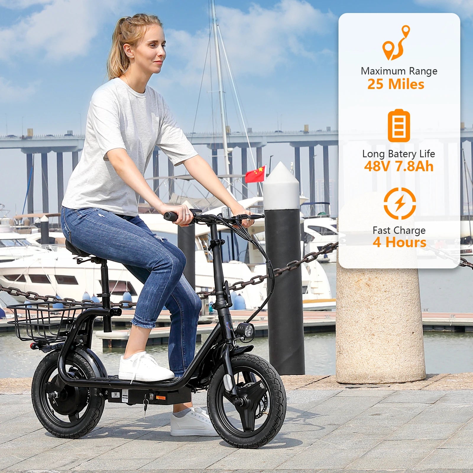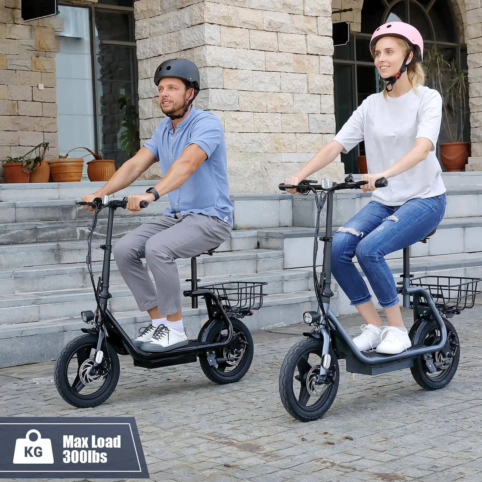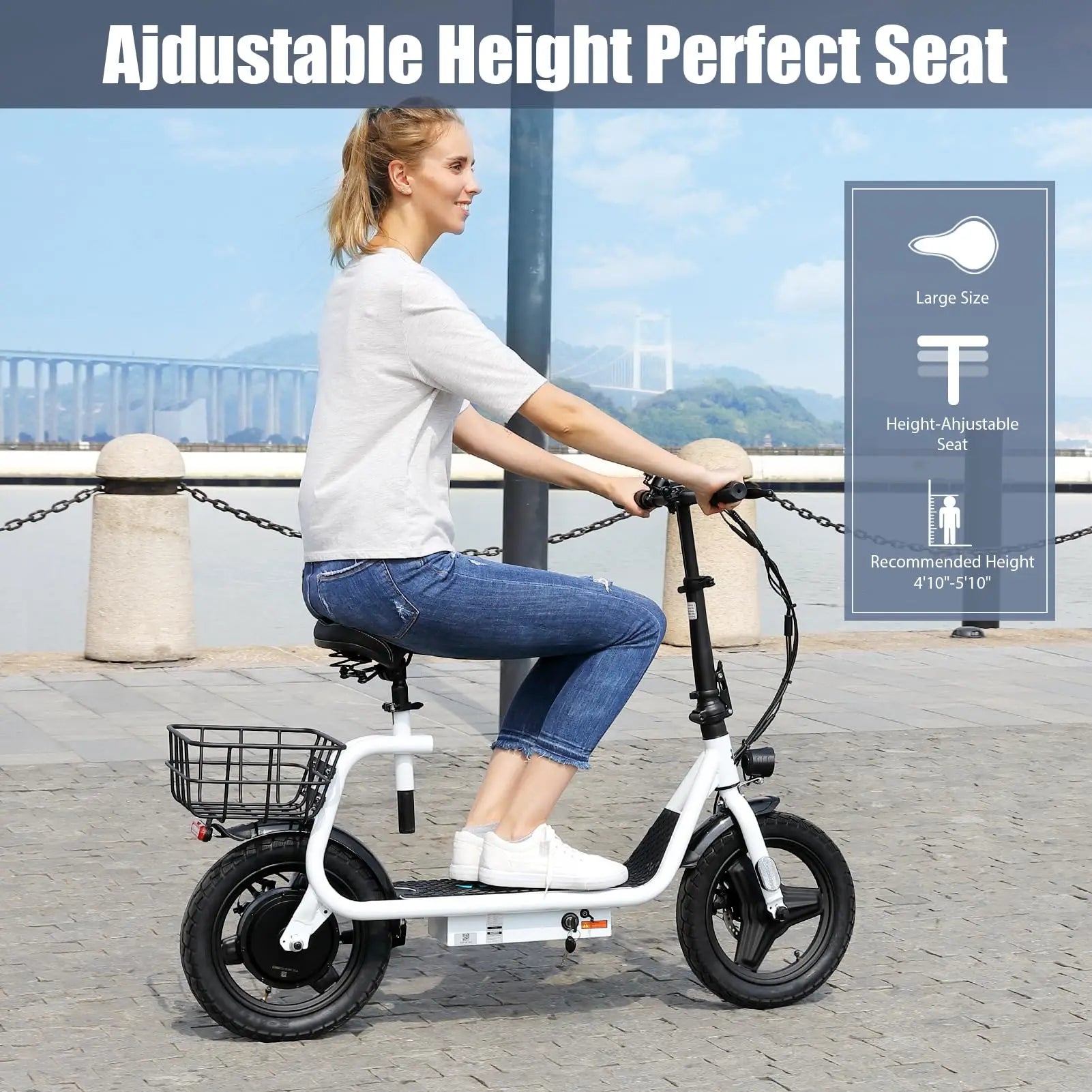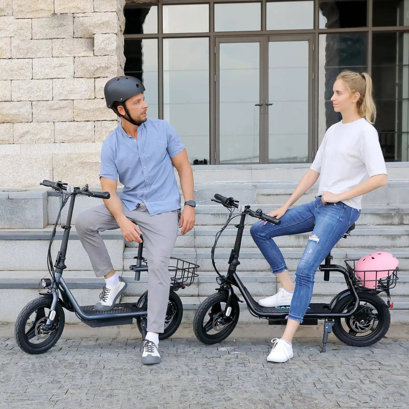 【Foldable & Easy to Carry】Electric scooter with seat for adults has a folding design. The compact folded size makes it easy to store in car trunks and other tight spaces, detachable scooter seat is included.