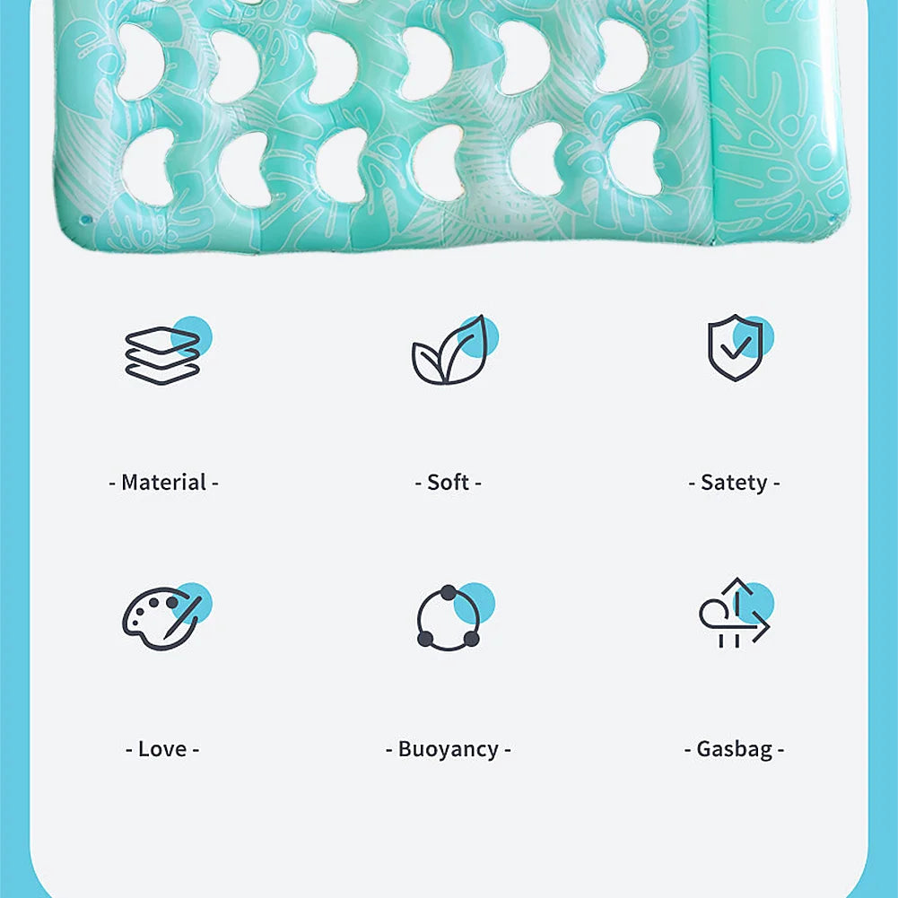 2. Headrest Support: Immerse yourself in a tranquil oasis of comfort with the built-in head support of our inflatable floating bed, designed to cradle your head as you unwind and savor blissful leisure.