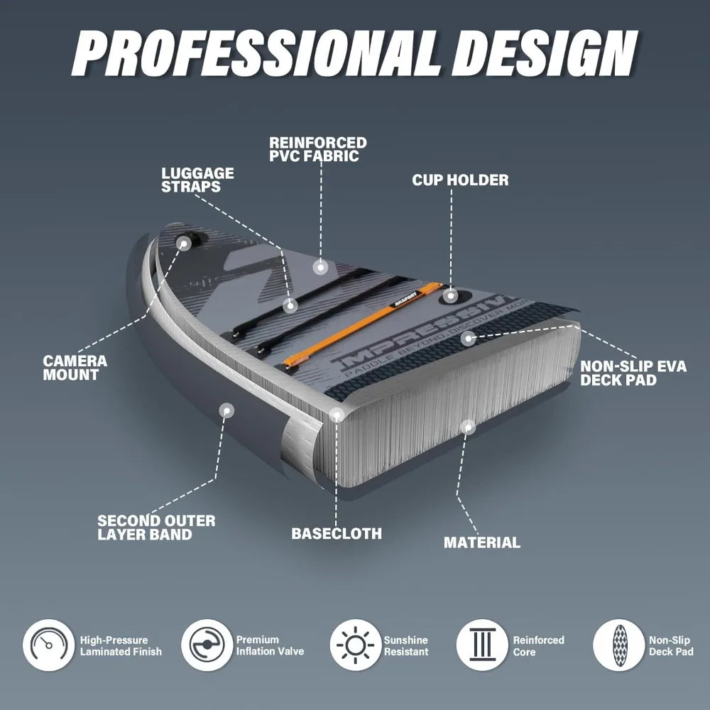 【2-in-1 Convertible Design】Innovative SUP-to-kayak conversion: use with the included seat and double-blade paddle to convert to kayaking mode, or remove to convert to traditional paddling mode.paddleboards can be used for paddling, cruising, yoga, fishing, flatwater touring, and more.