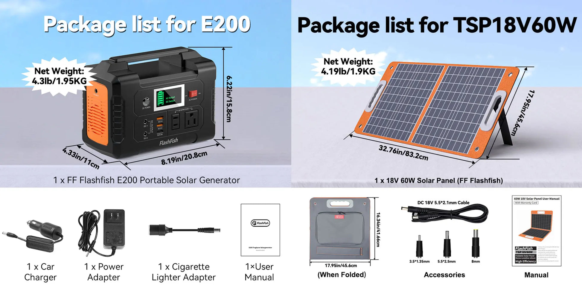 Flashfish portable power station EA200 is designed for outdoor activities' power supply. Small size (5.6lbs, 8.2x4.3x6.2 inch) with big capacity (151Wh), the most portable all-in-one power station can fulfill your demand for camping or emergency.