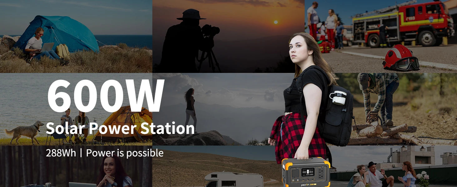 [SMALL BUT POWERFUL]: 288Wh capacity with 600W AC pure sine wave inverter, Built-in 9 standard outlets, E300LFP portable power station can be used outdoors and in power outages for most of your equipment.