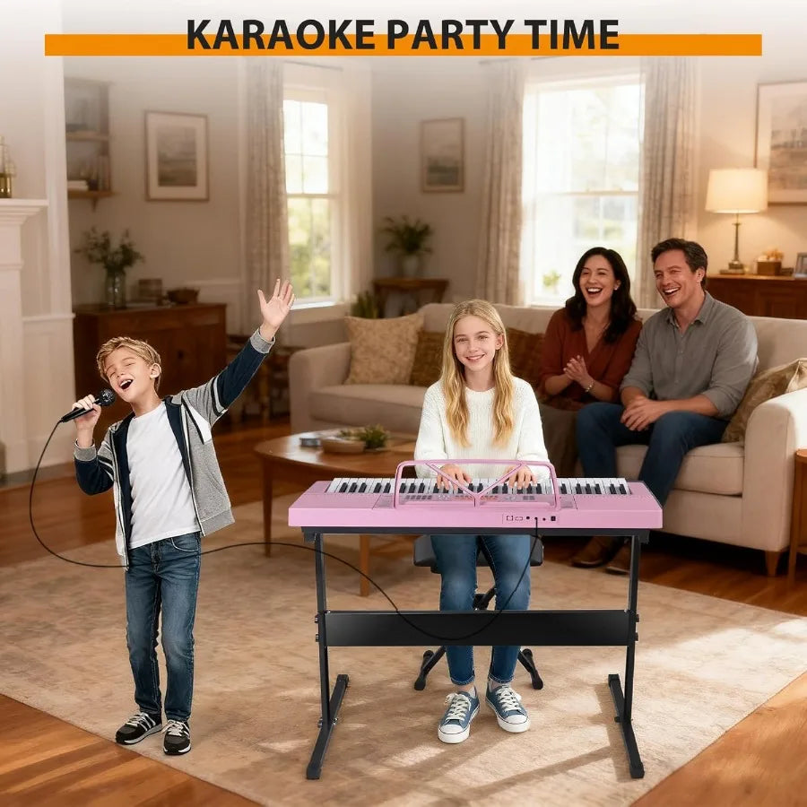 Portable61Key Elect Keyboard Piano,Stand,LED Disp.Adjust-Height Stand/Stool Include Headph Microphon