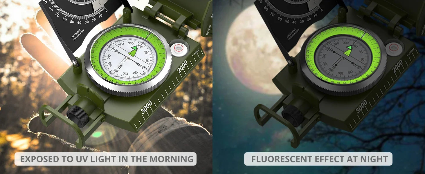 Professional Lensatic Compass Metal Waterproof IP65 Sighting Clinometer, Carry Bag