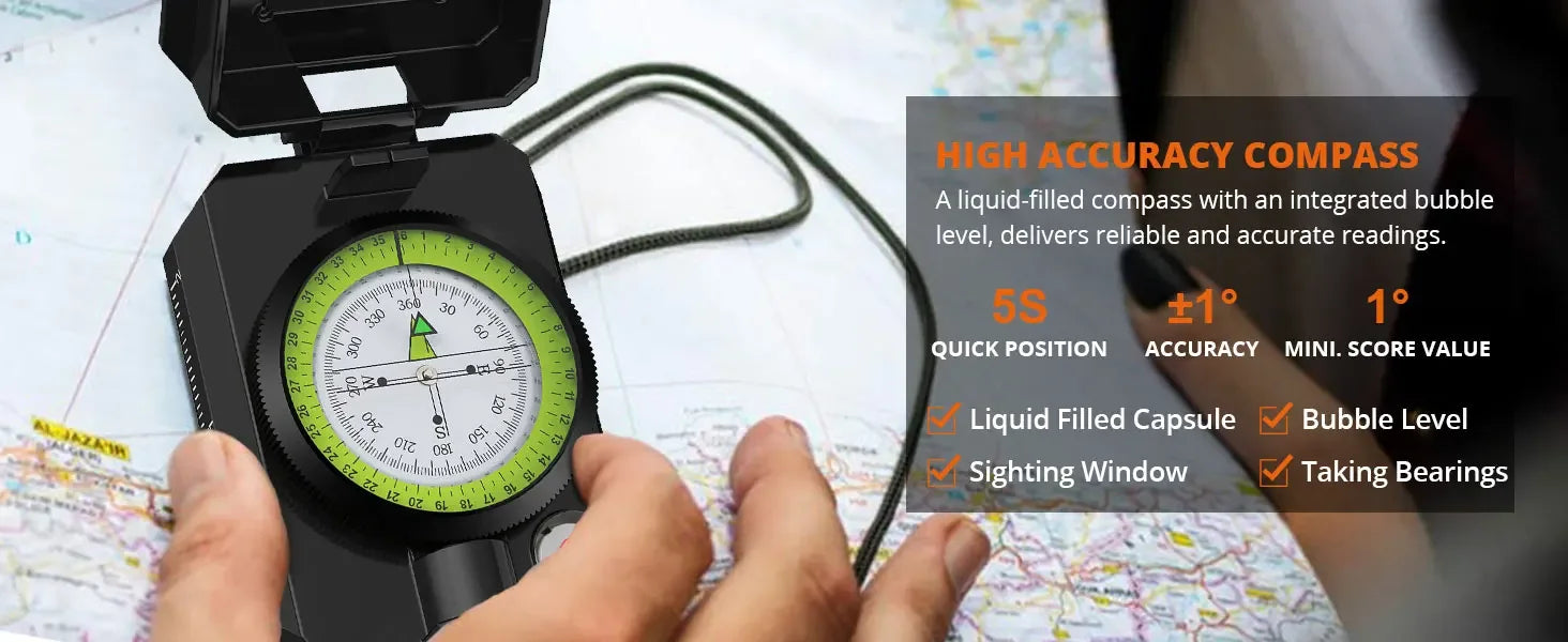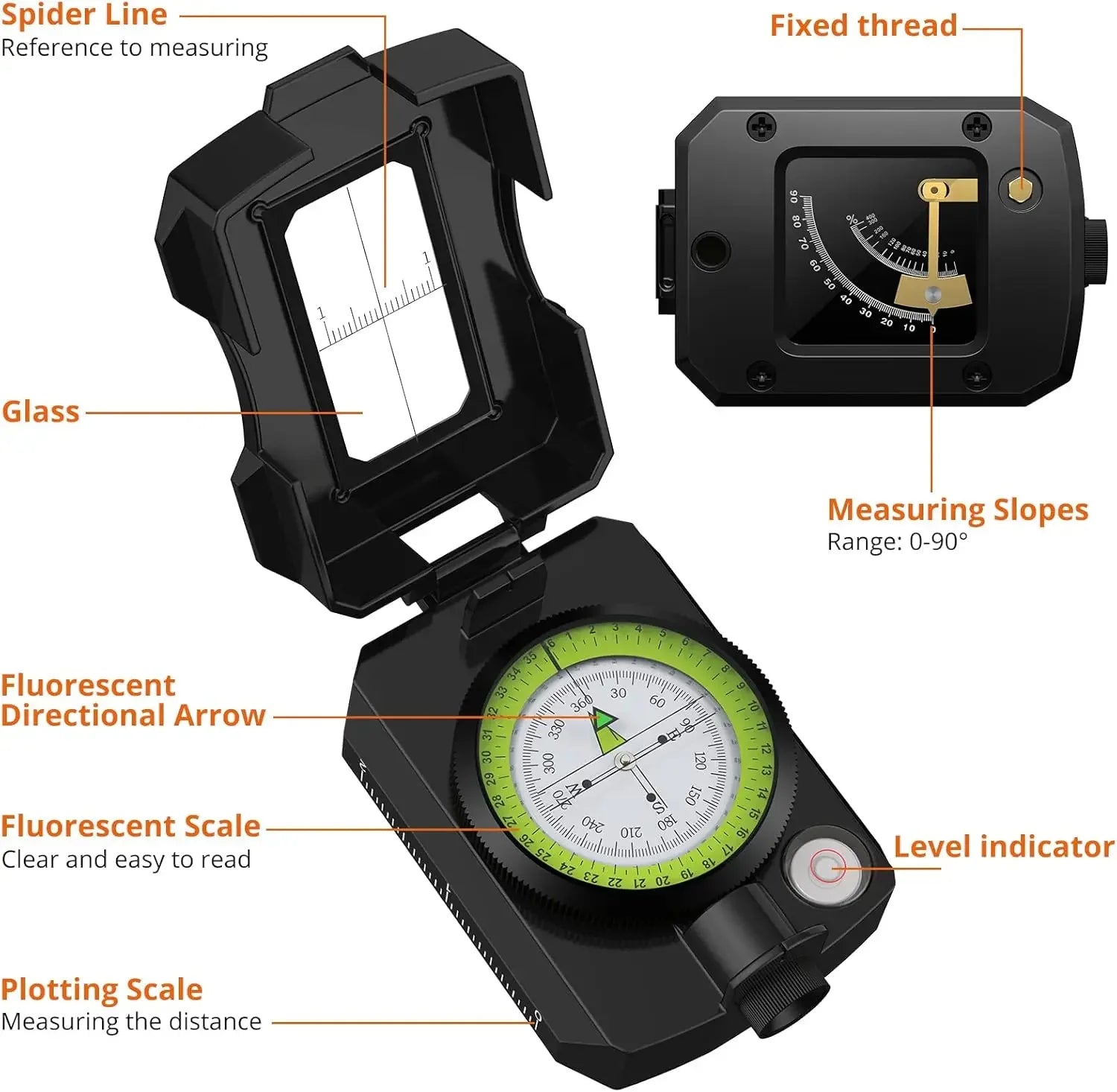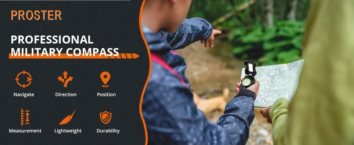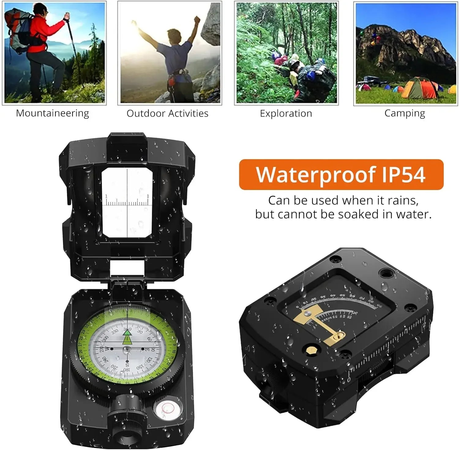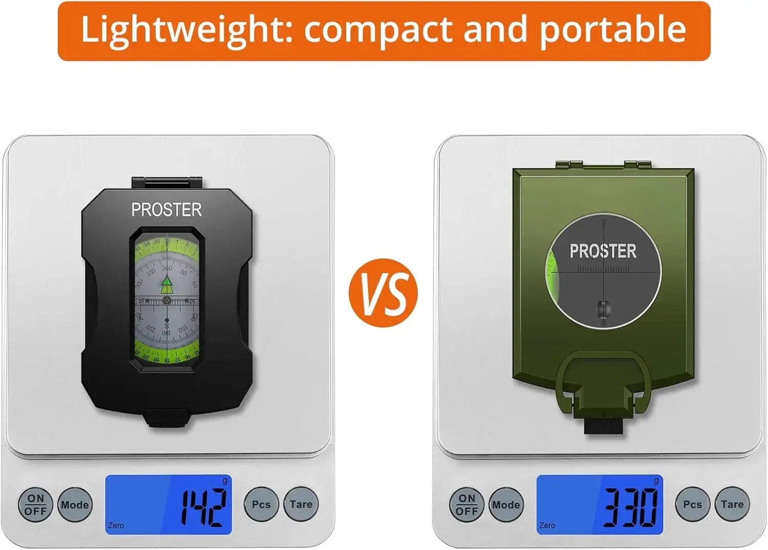 Proster Hiking Compass - Aluminium, Waterproof, Clinometer, Fluorescent Scale, Carry Bag (128 chars)
