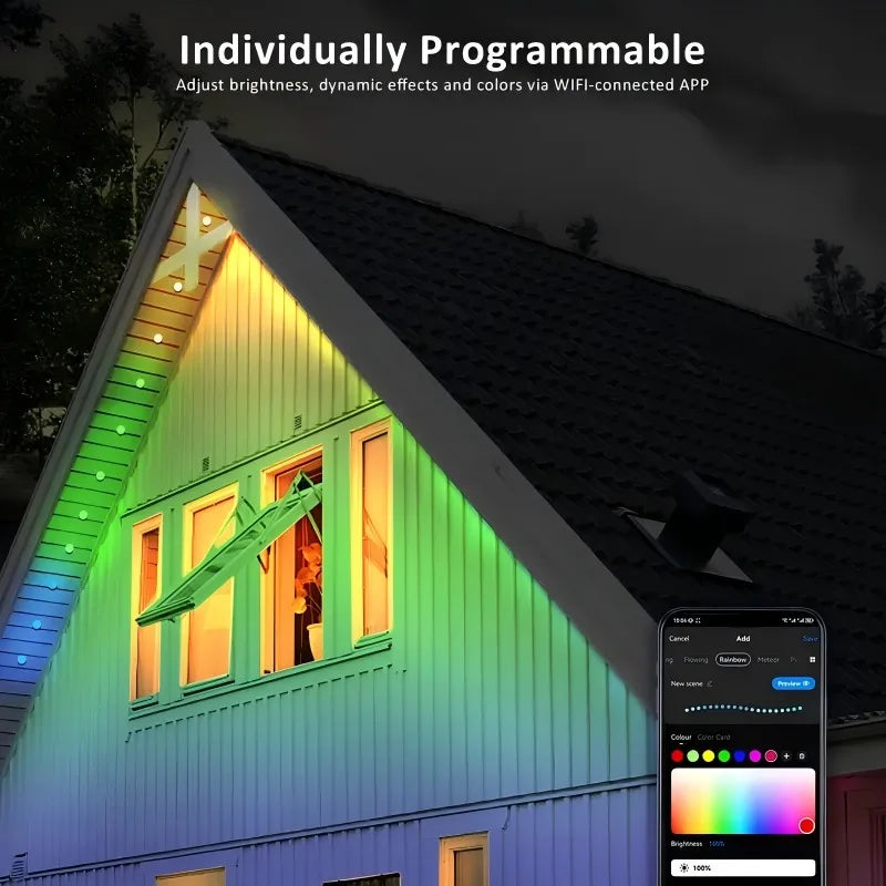 Illuminate your world with 16 Million Colors and Mesmerizing Modes, and even customize your own scene mode through the app, this eaves lights can creat create endless enchantment! Very suitable for Christmas Halloween or any other holiday and daily decoration.