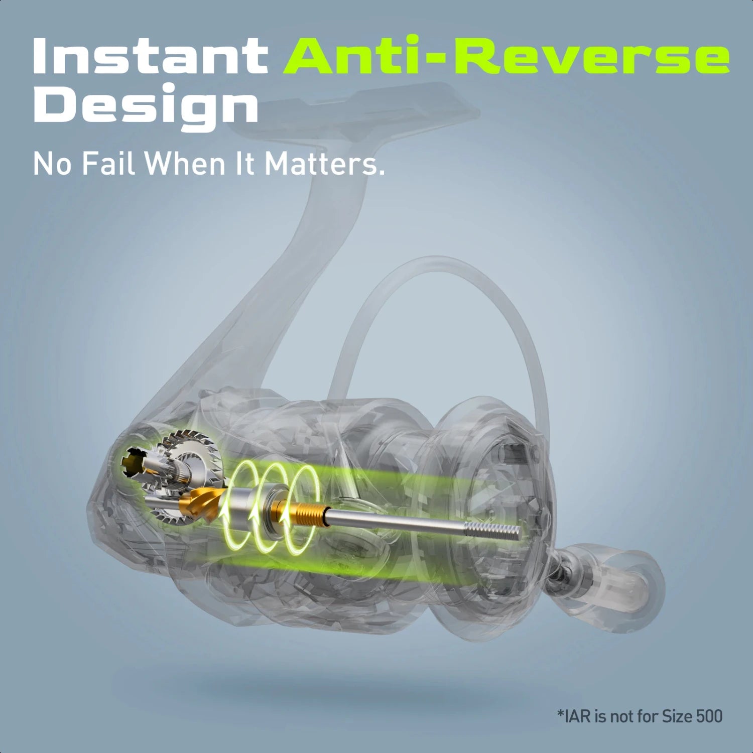 2. Engineered in Mainland China, the M1 Spinning Reel features a lightweight graphite reel that is corrosion-resistant and saltwater compatible. The anti-reverse system and comfortable grip make for effortless retrieval, while the CNC machined aluminum spool and instant hook setting provide efficient drag and gear systems for precision engineering.