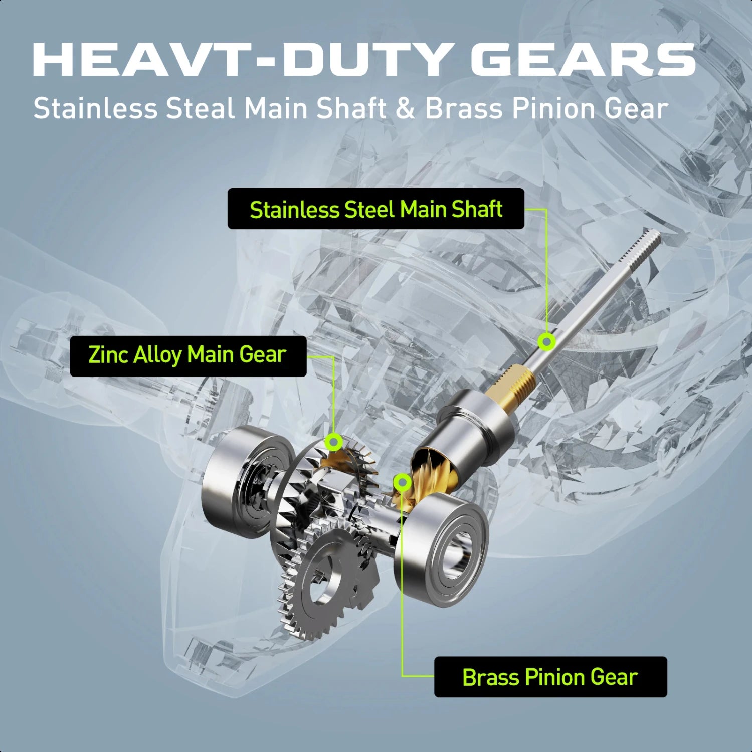 4. The M1 Spinning Reel is tournament grade with an interchangeable handle and slow oscillation for maximum reliability and precision gear alignment. The ultra-lightweight design and premium materials make for long casting distances and smooth drag performance, while the enhanced casting control and impact-resistant construction guarantee a sleek and balanced rotor for an improved gear system.