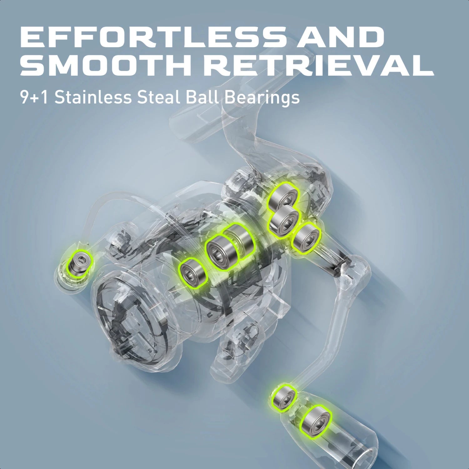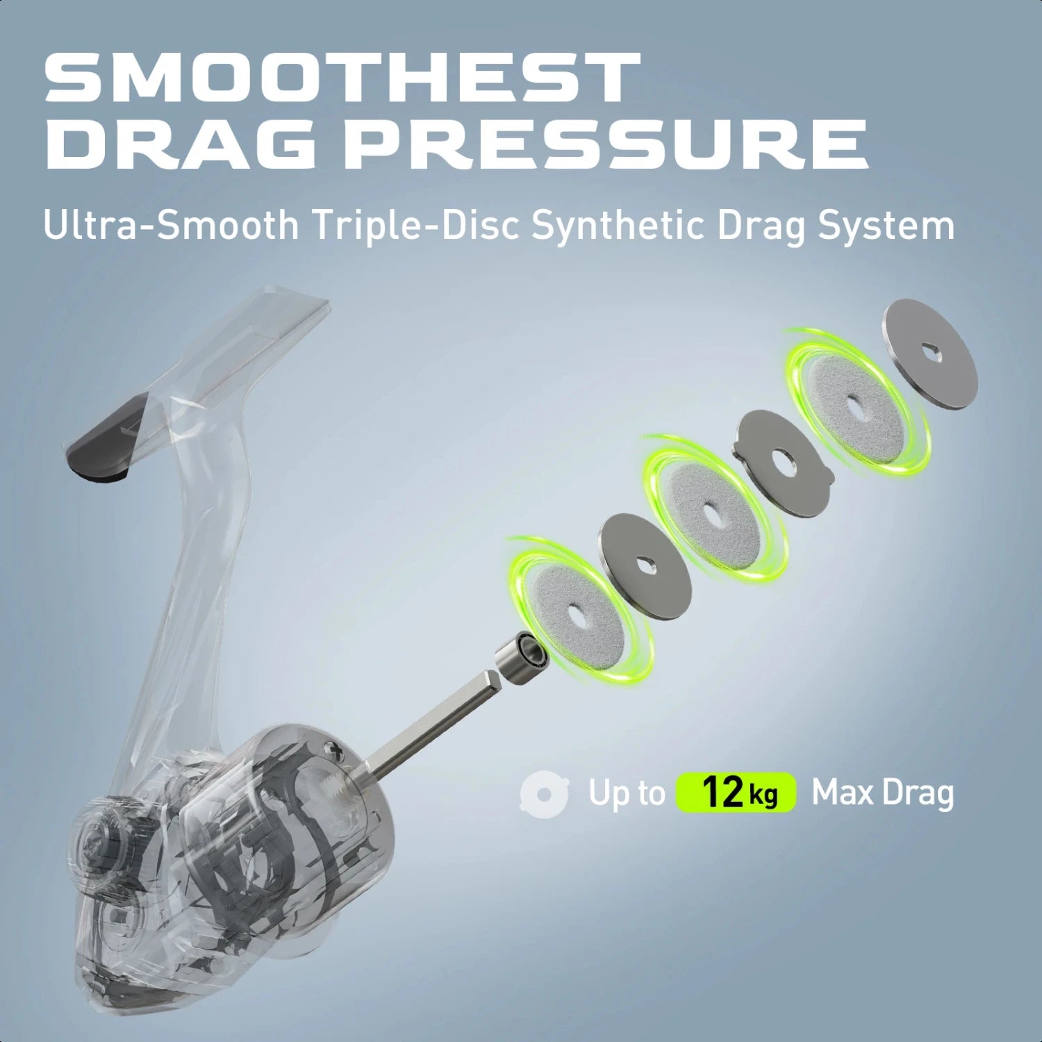 Spinning Reel 12kg Max Drag Graphite Reel, 9 + 1 Ball Bearings, 5.2 1 Gear Ratio Perch Bass.Pike