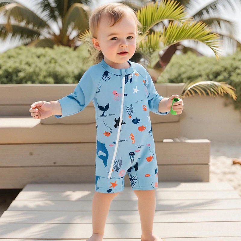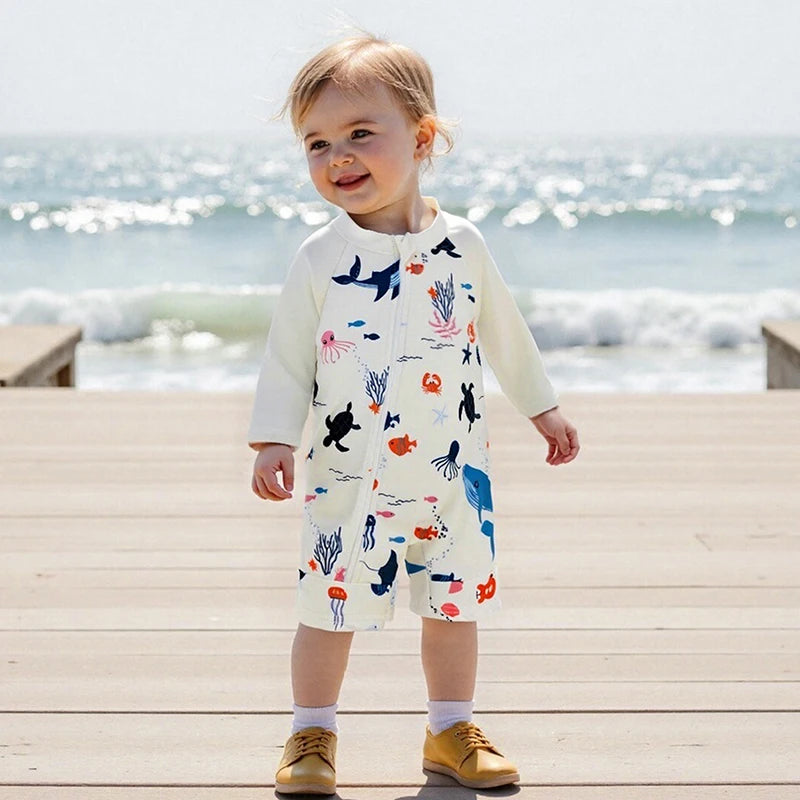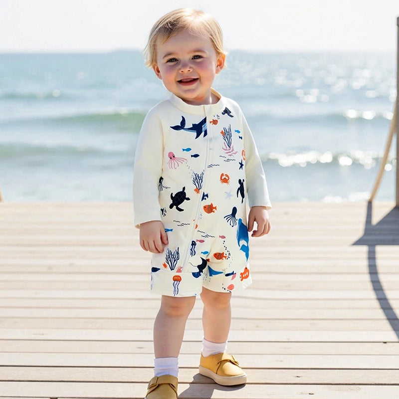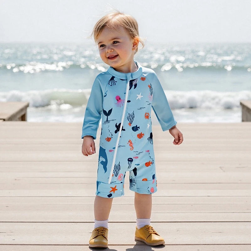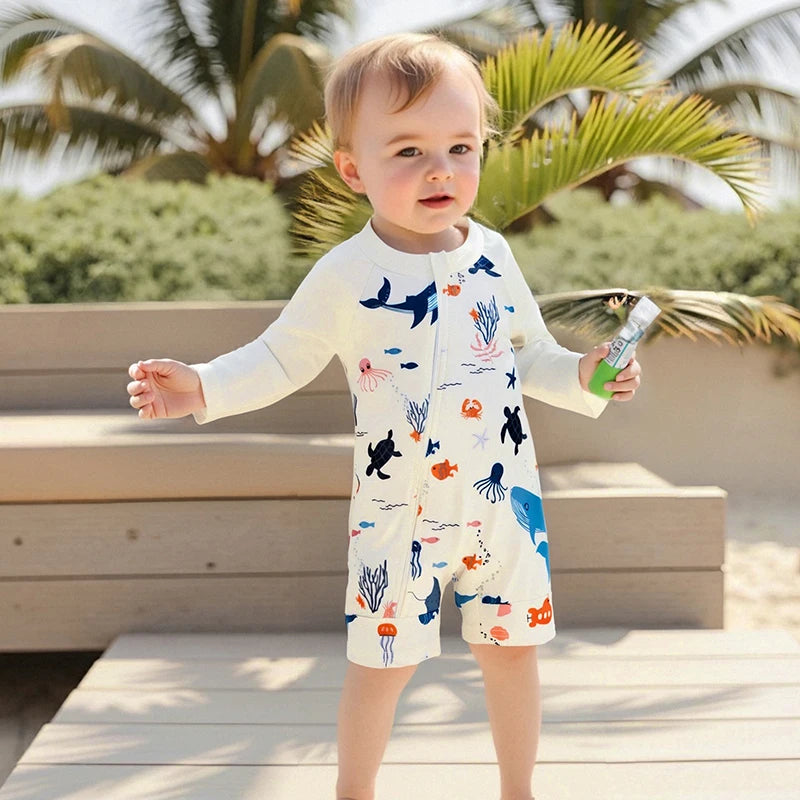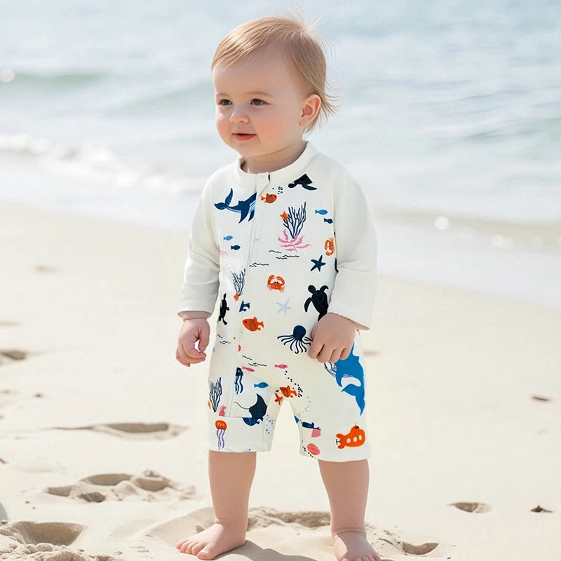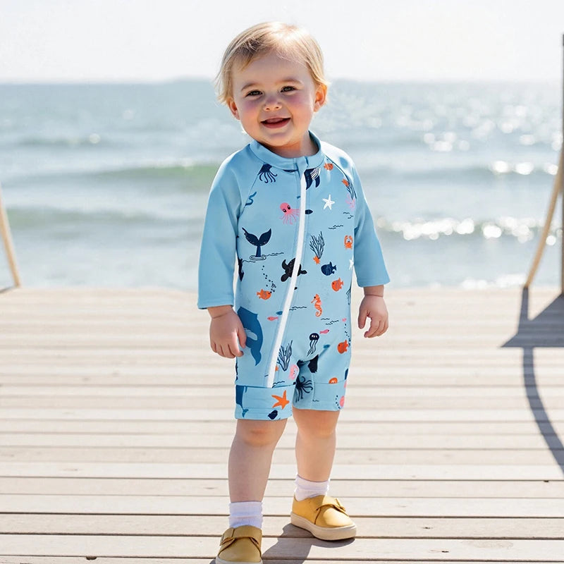 Baby Boy Rash Guard Swimsuit Long Sleeve Ocean Animal Print Zip Up Bathing Suit Swimwear
