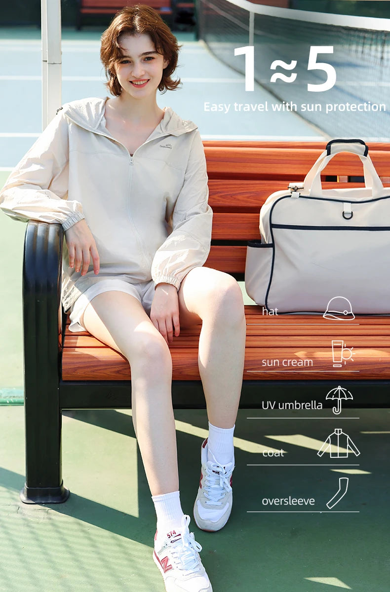 The brim of the hat protects against facial UV rays, and the drawstring design at the back and hem of the hat quickly adjusts for wind resistance.