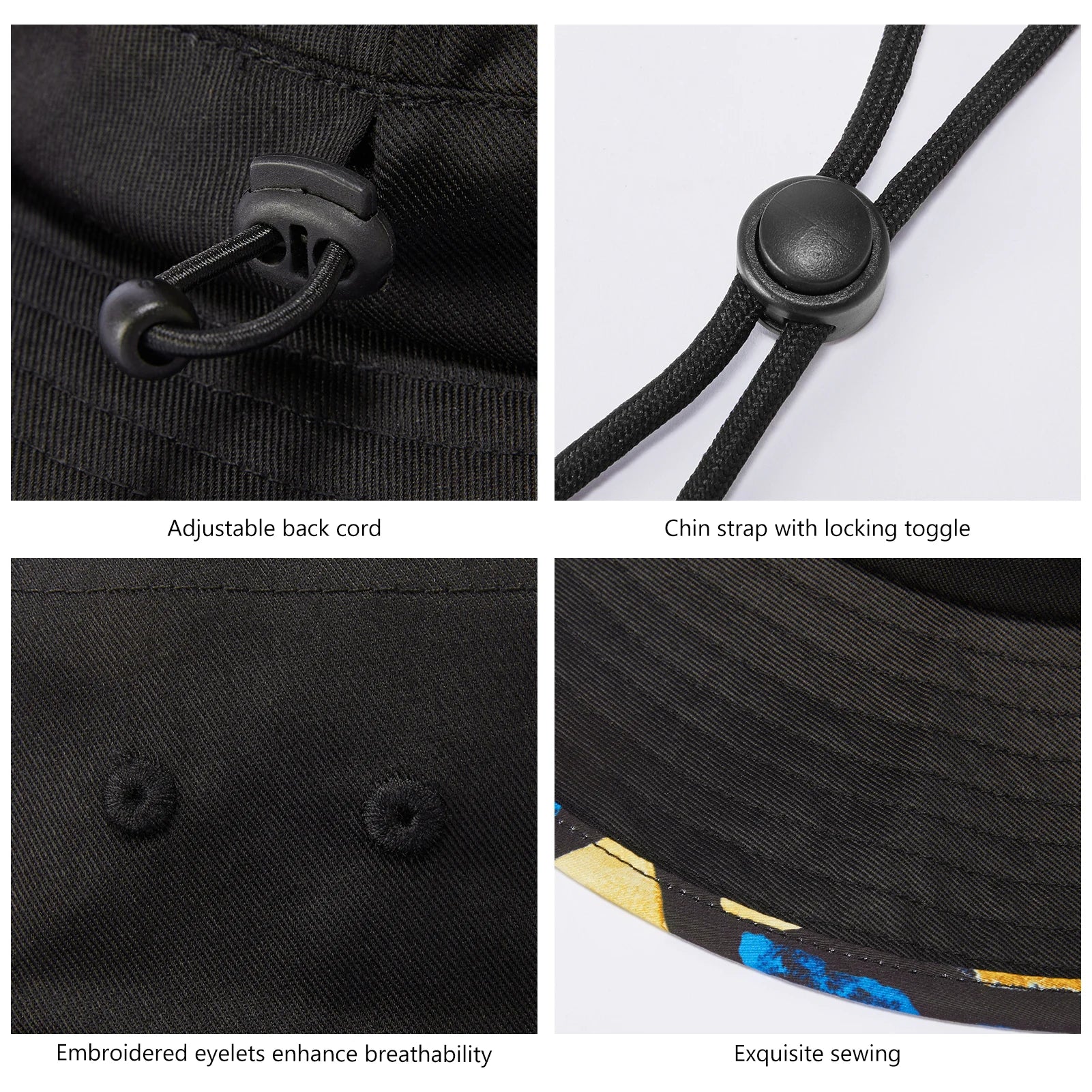 UPF 50+ Foldable Sun Hat Patterned Under Brim Bucket,Summer Hiking Fishing Beach Safari Men Women